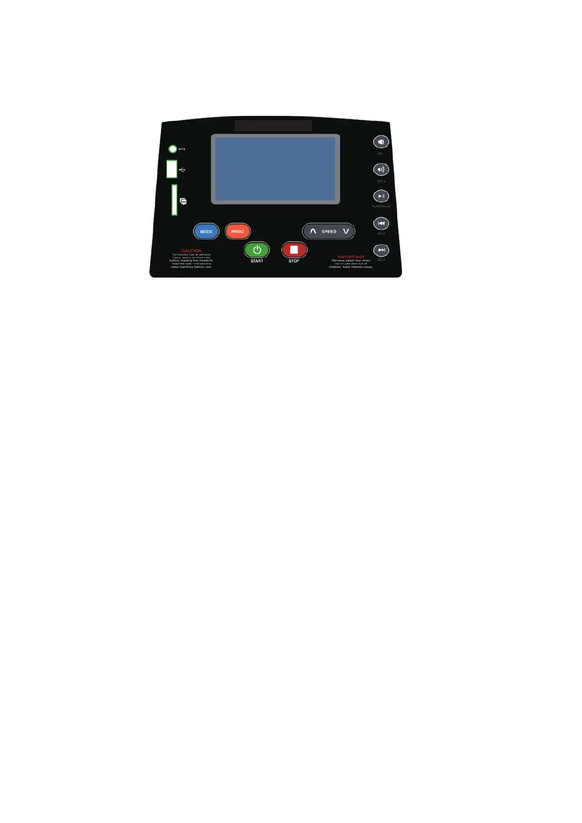 NOTE: Always stand on the side rails when you start the treadmill, never start