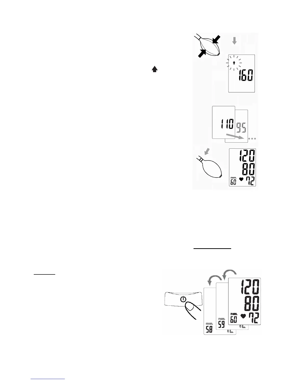 2. Pressione a pêra para aumentar a pressão dentro da braçadeira. O visor mostrará a leitura da