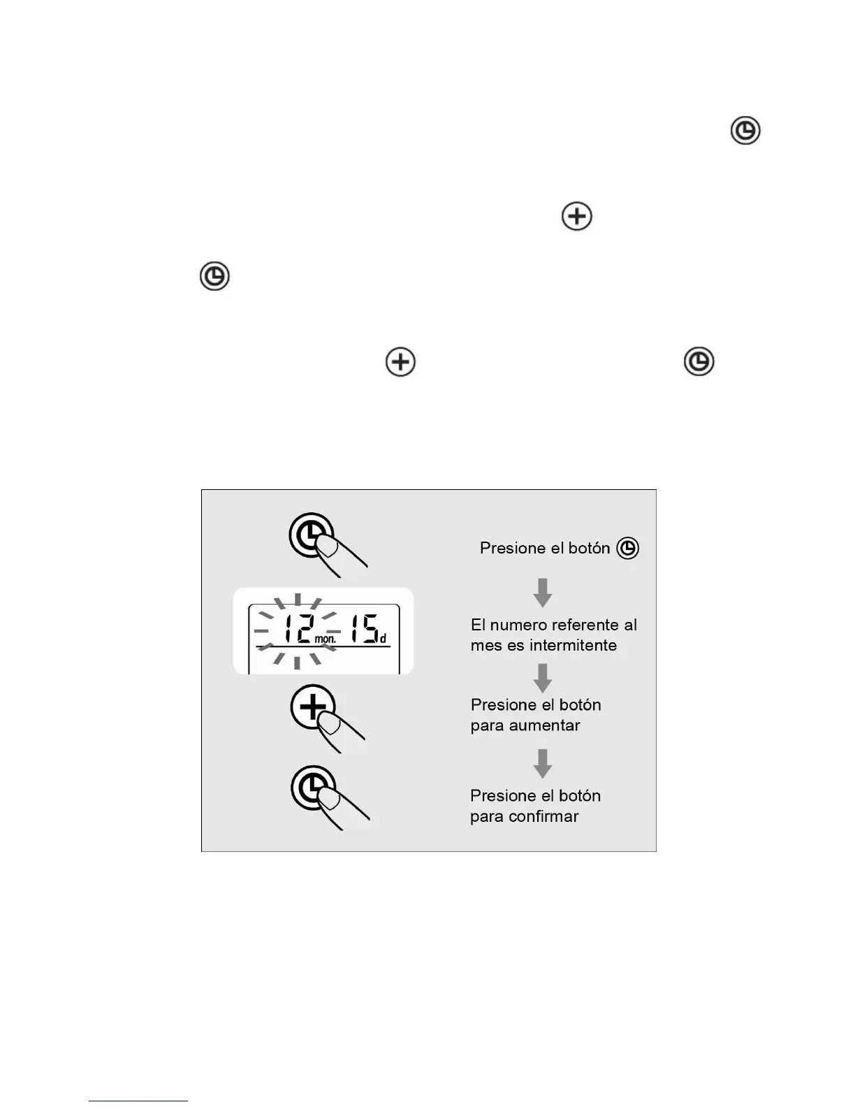 3. Cambie la fecha, la hora y el minuto como descrito en el ítem 2