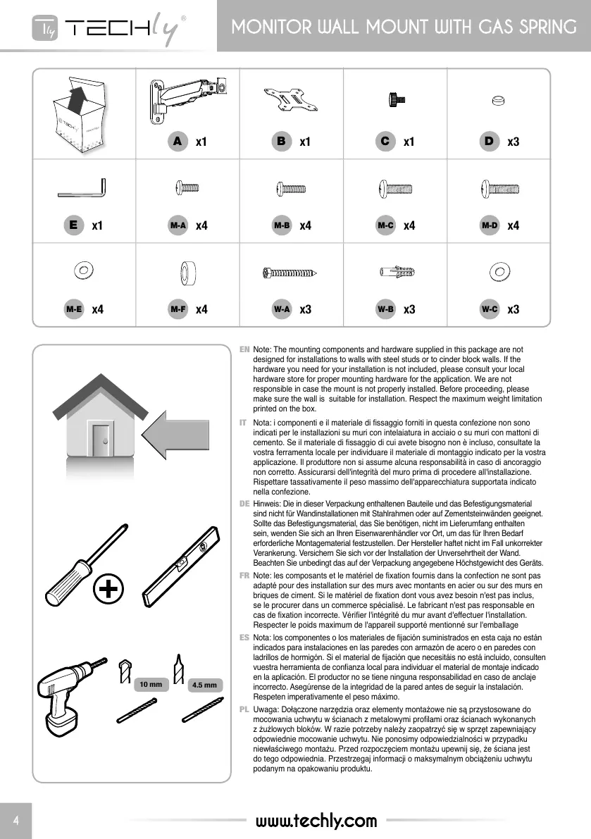 make sure the wall is suitable for installation. Respect the maximum weight limitation