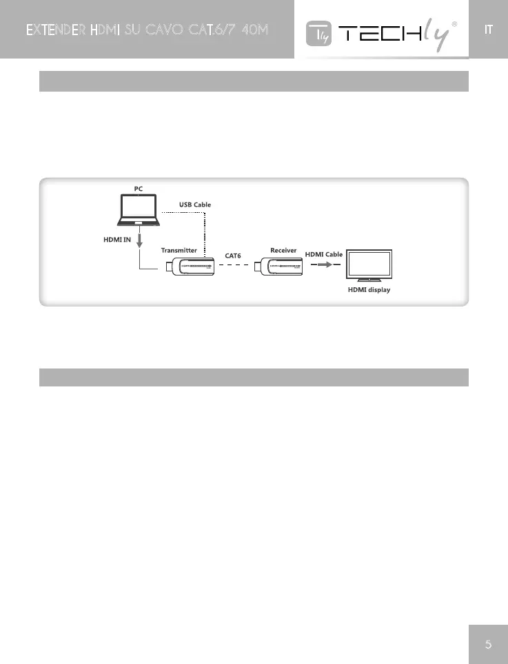 3) Collegare il cavo USB solamente al trasmettitore, ciascuna unità verrà alimentata e l’extender