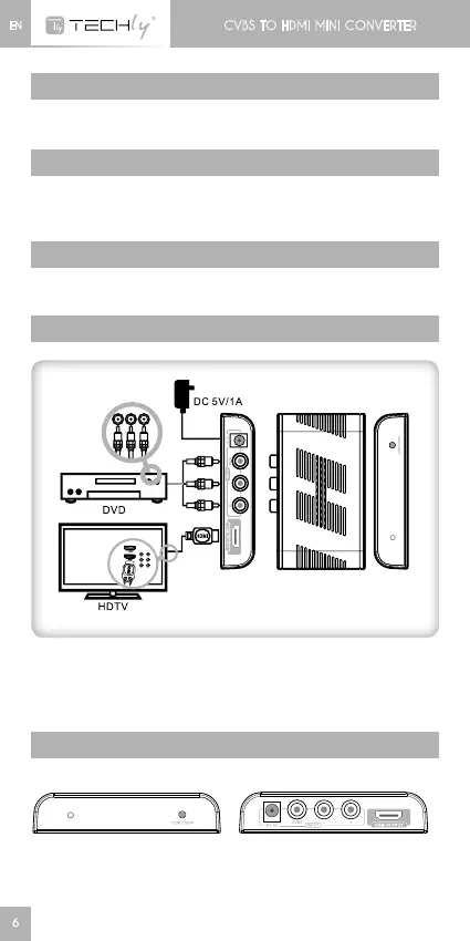 1. Connect theCVBS sourceto the CVBSinput ofCVBS toHDMI