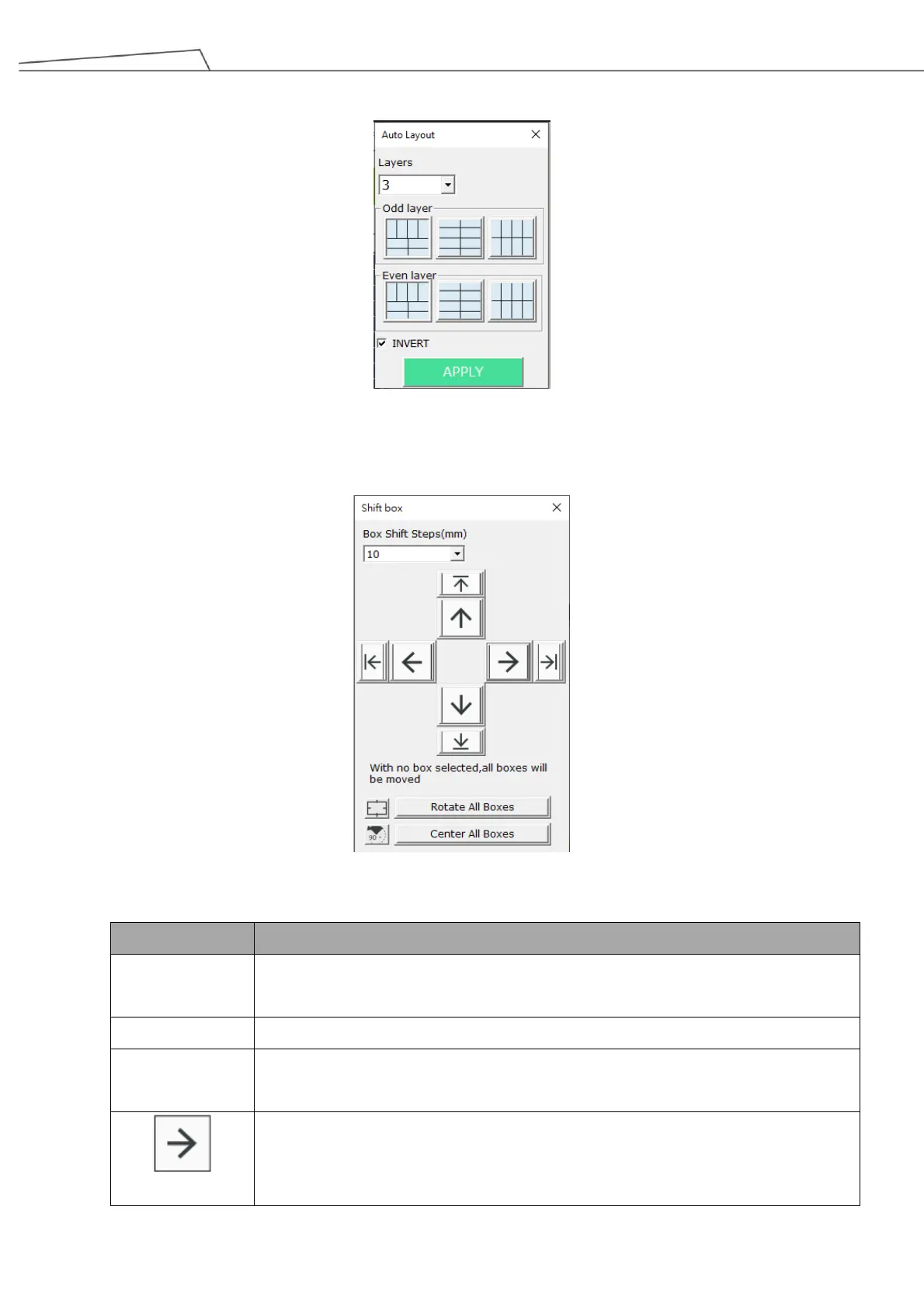 Shift the box(es) to the direction of the Arrow by defined Box Shift Step