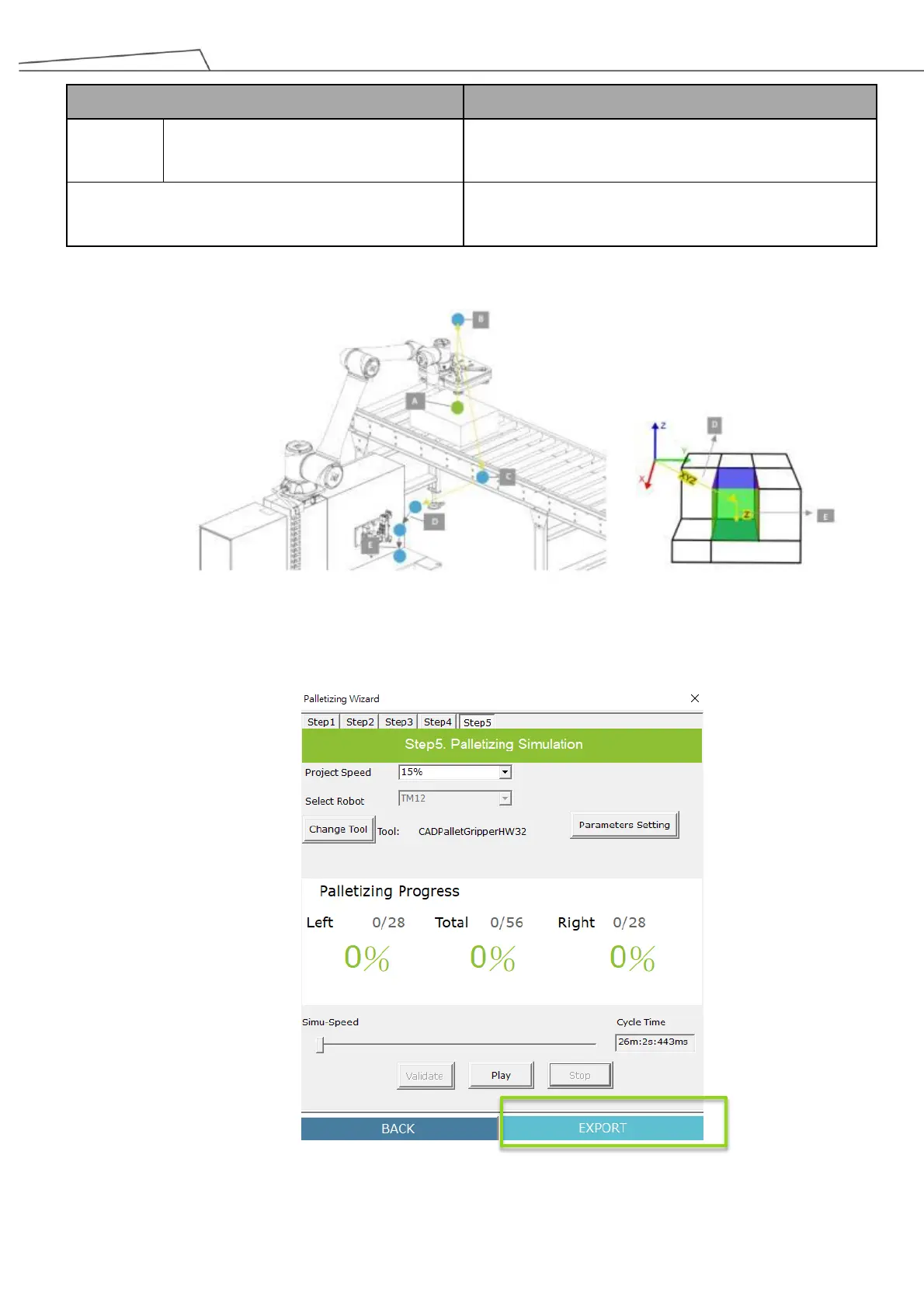 If all the settings are confirmed, click “EXPORT” to export the palletizing layout file.