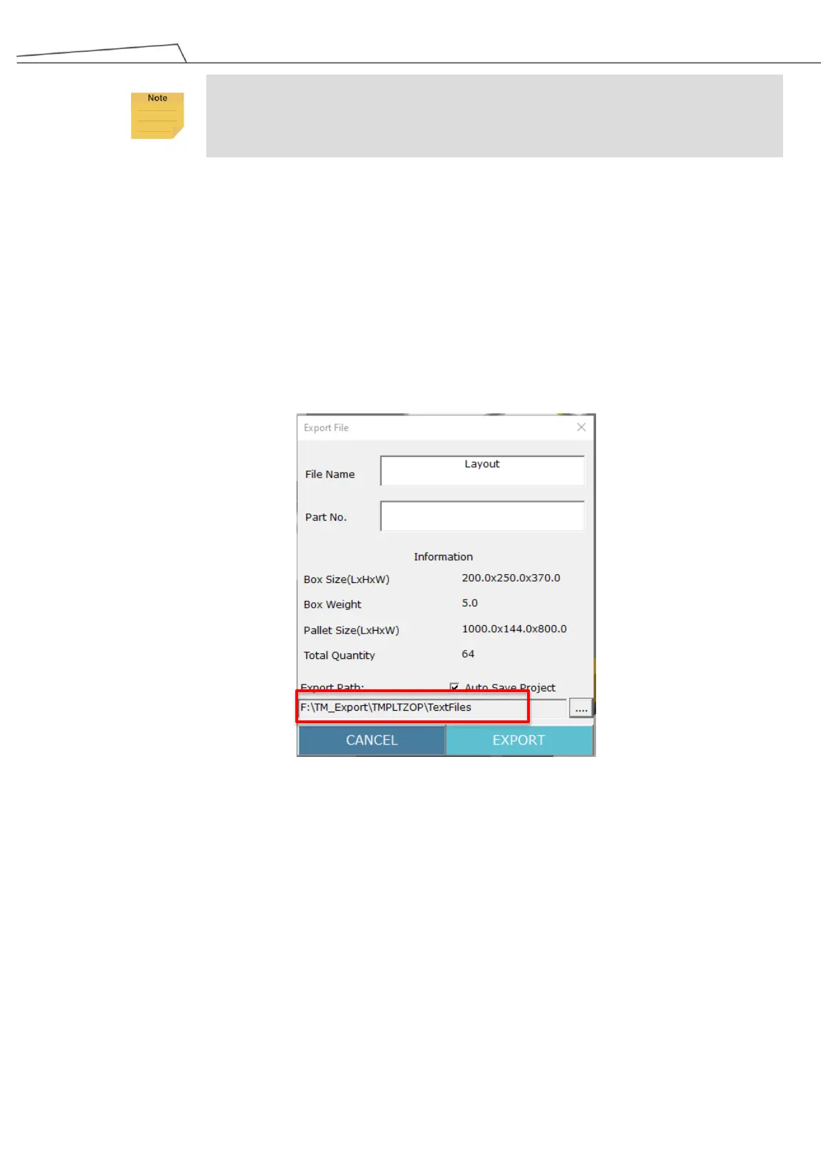 Click Export to export generated palletizing configuration file, and the recommended Export Path is