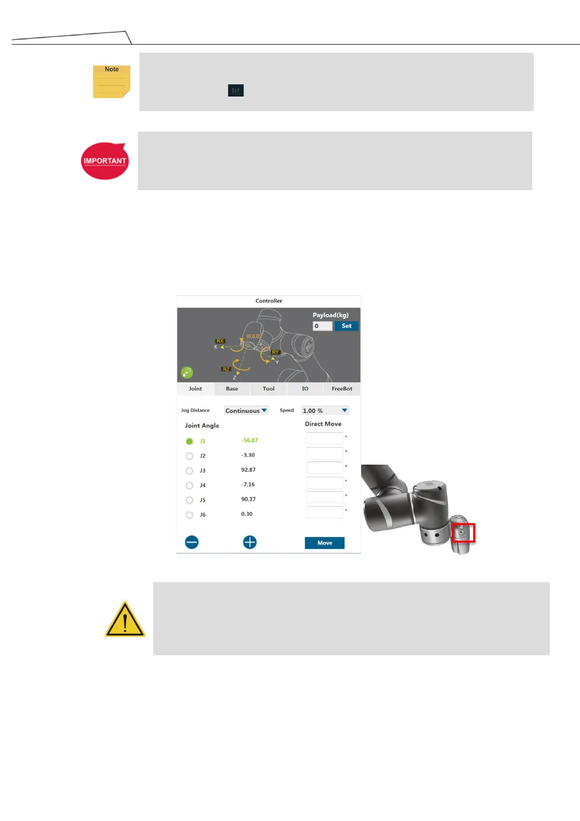 due to gravity. Be prepared to support the robot system. If it is found that it is not possible