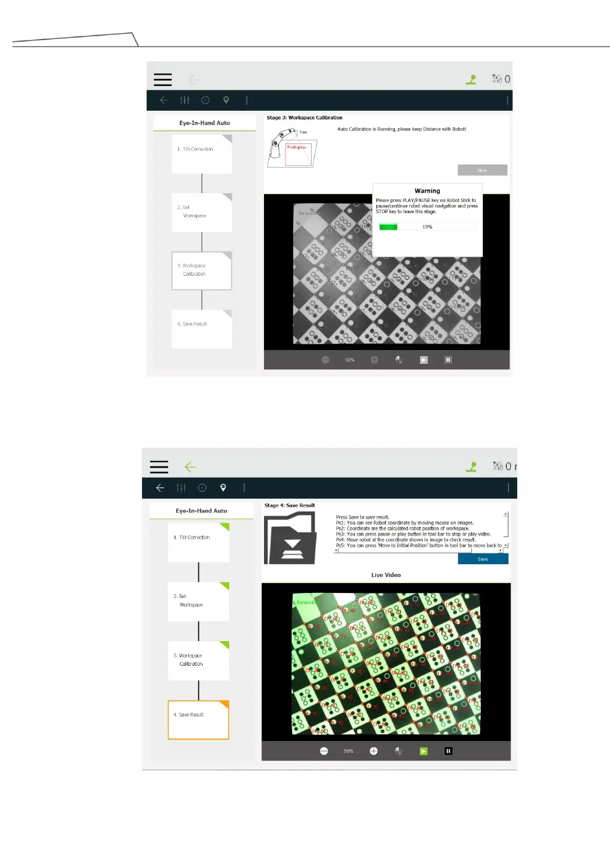 Techman Robot TM Palletizing Operator - Figure 148: Workspace Calibration; Figure 149: Save Result