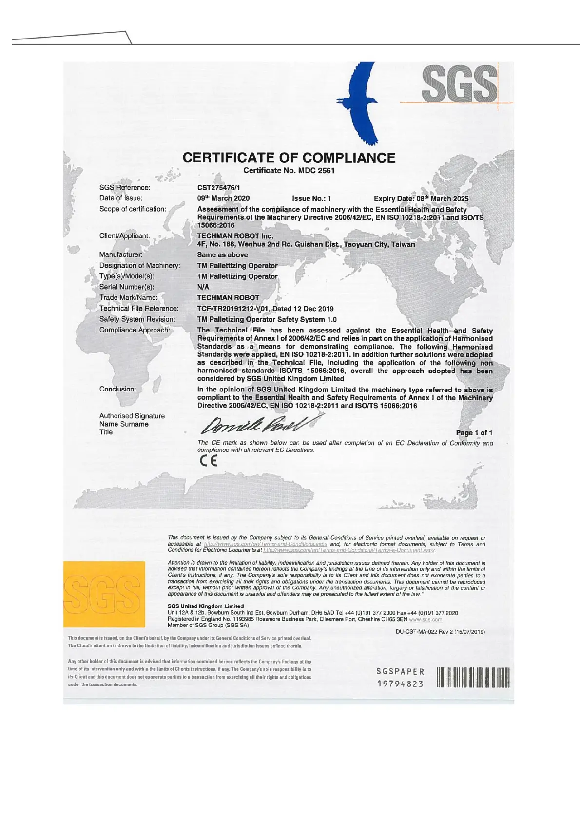 TM Palletizing Operator User’s Manual Product Version: 1.0 / Document Version: 1.0 174