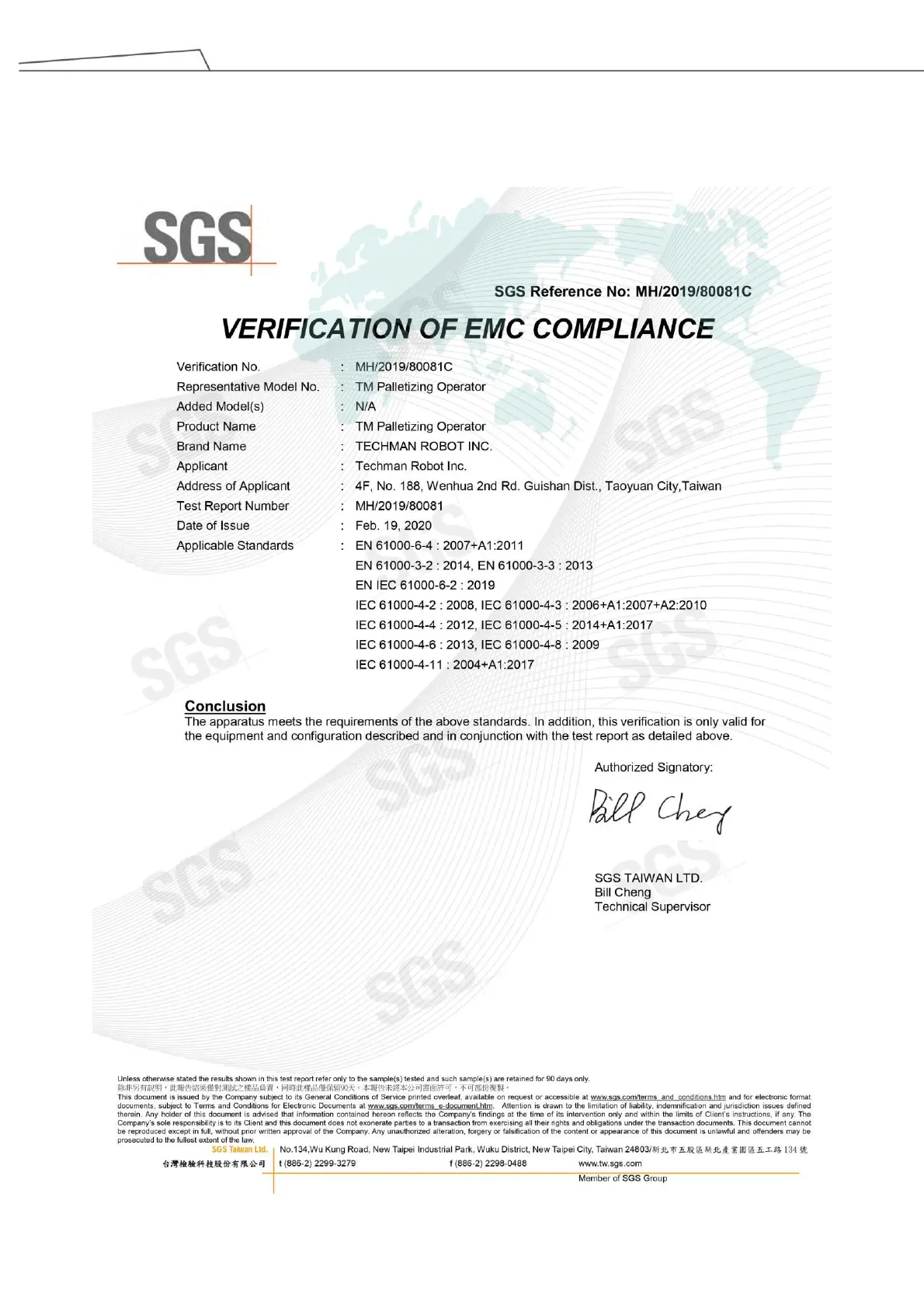 Techman Robot TM Palletizing Operator - Appendix - E: Verification of EMC Compliance
