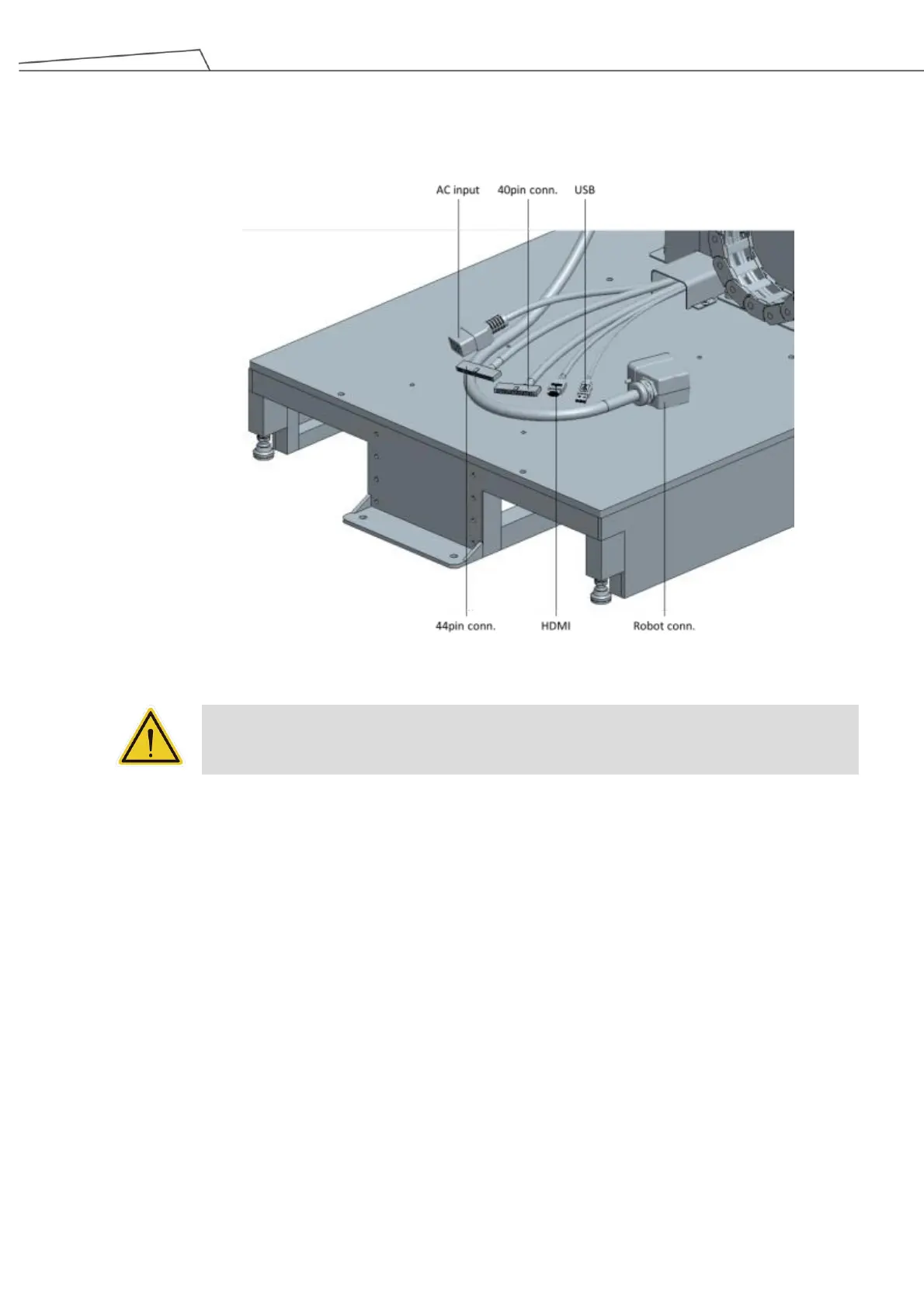 4. Note that the robot connector cable does not go through the space between the legs and the brackets.