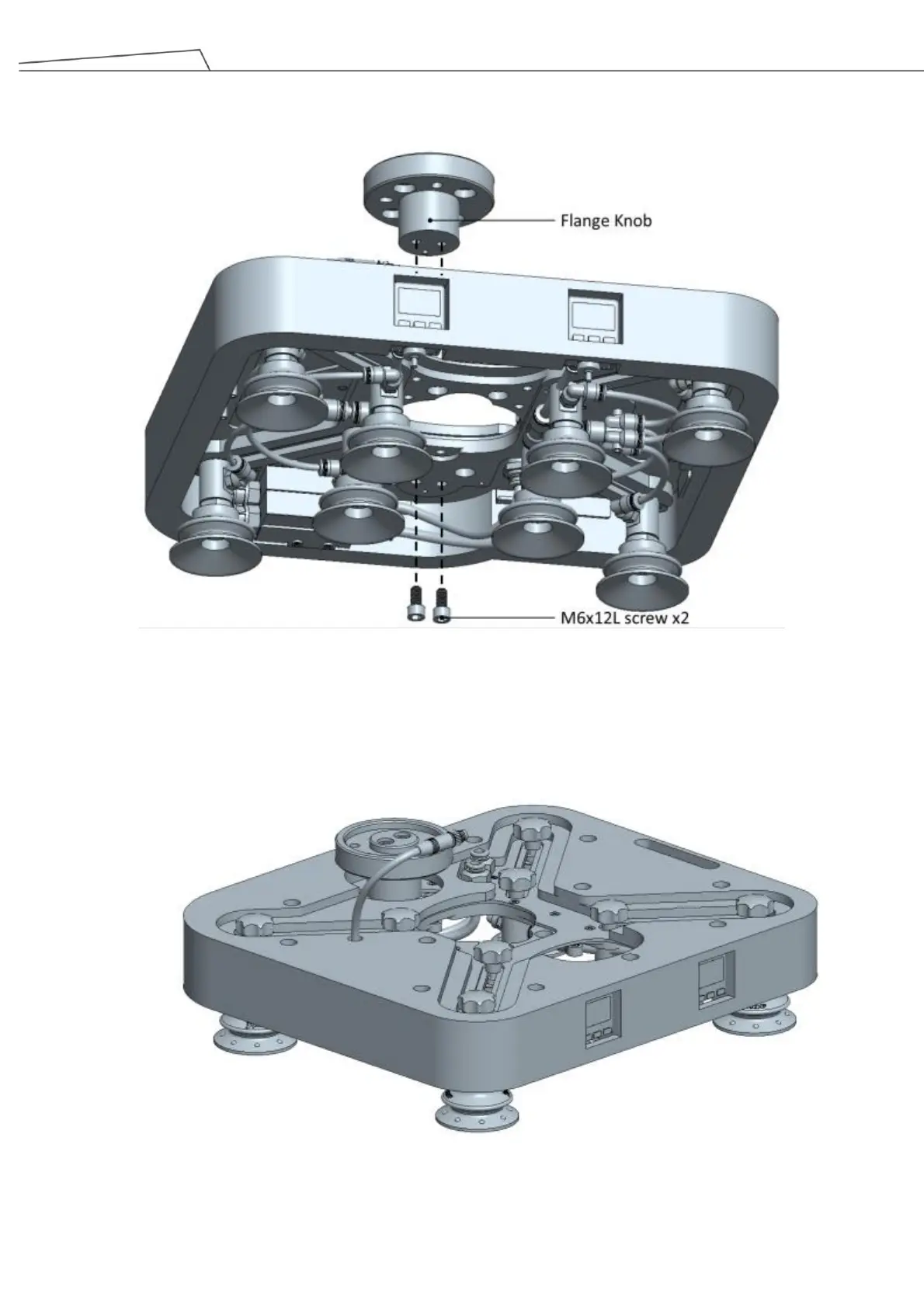 3. Fasten flange knob to 10cm shifted position and secure it with two M6x12L screws.
