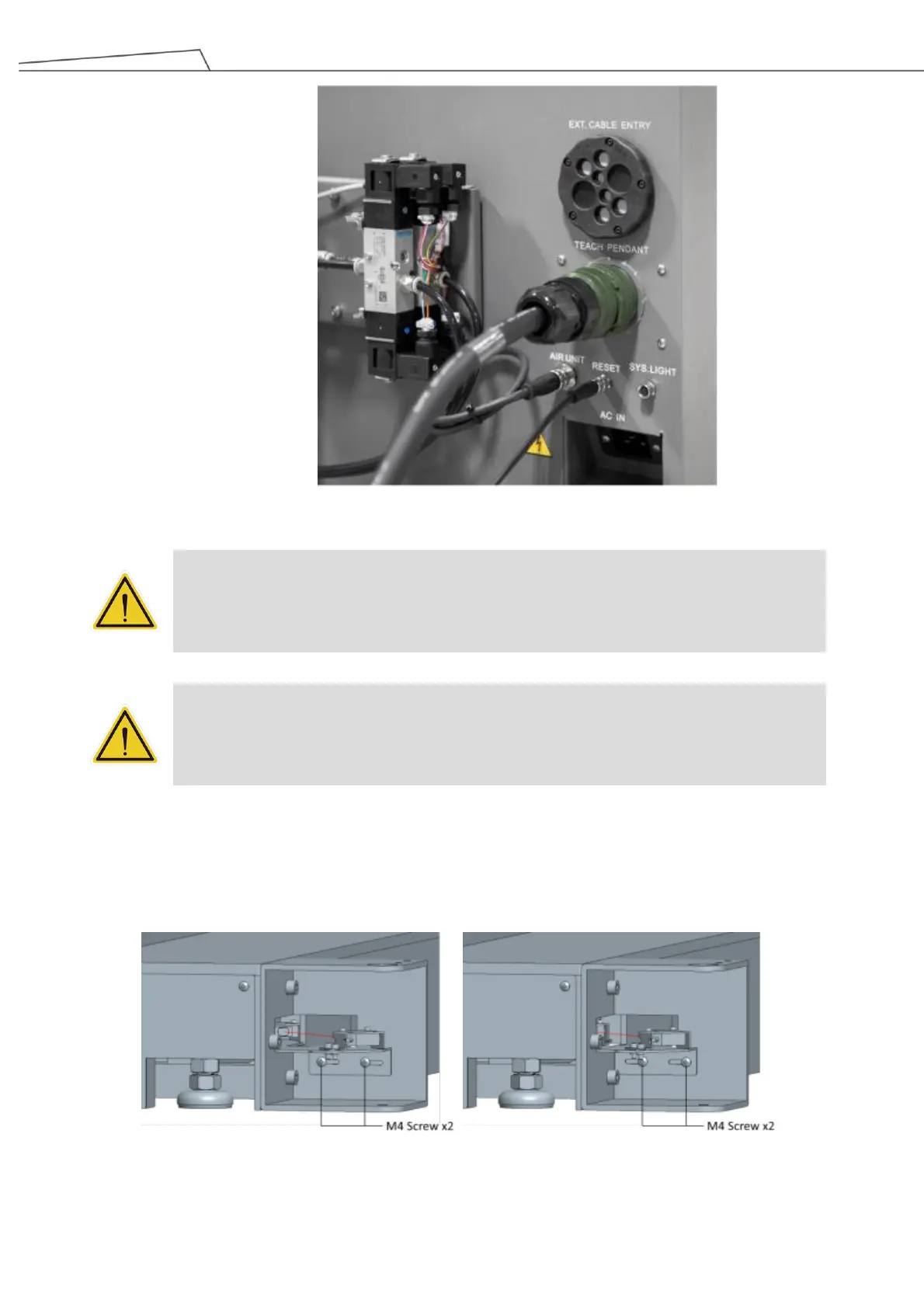 Make sure the cable is properly plugged before powering on the pendant. Avoid unplugging