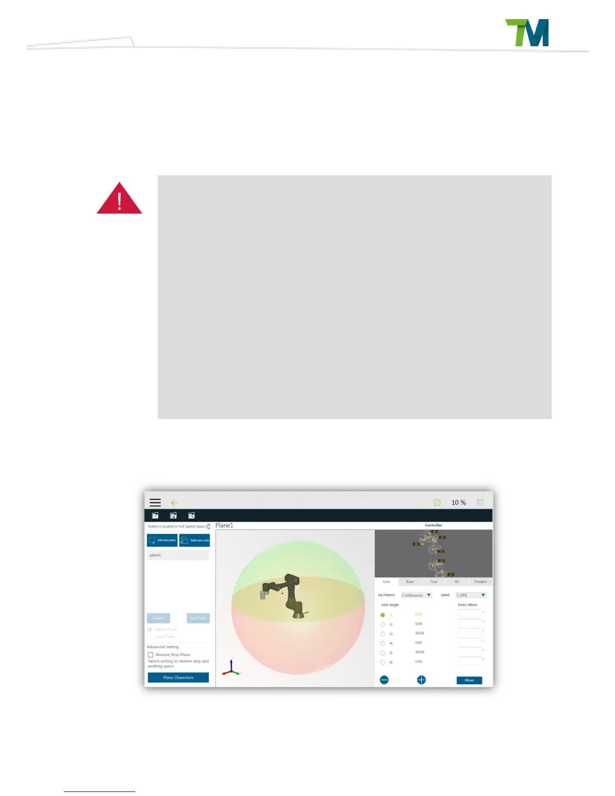 TM Robot safety space cannot be utilized as a safety device solely. User must conduct a full