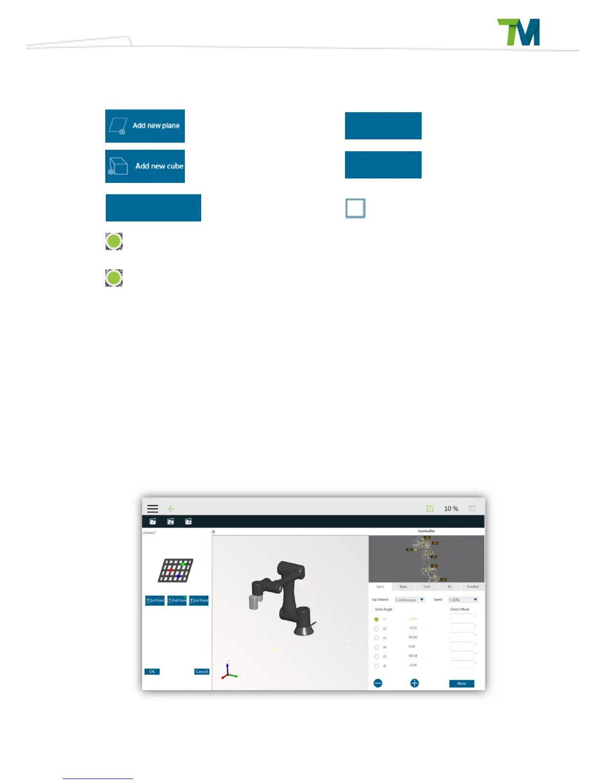 for the collaboration area and stop space separately. The robot will start to reduce the motion
