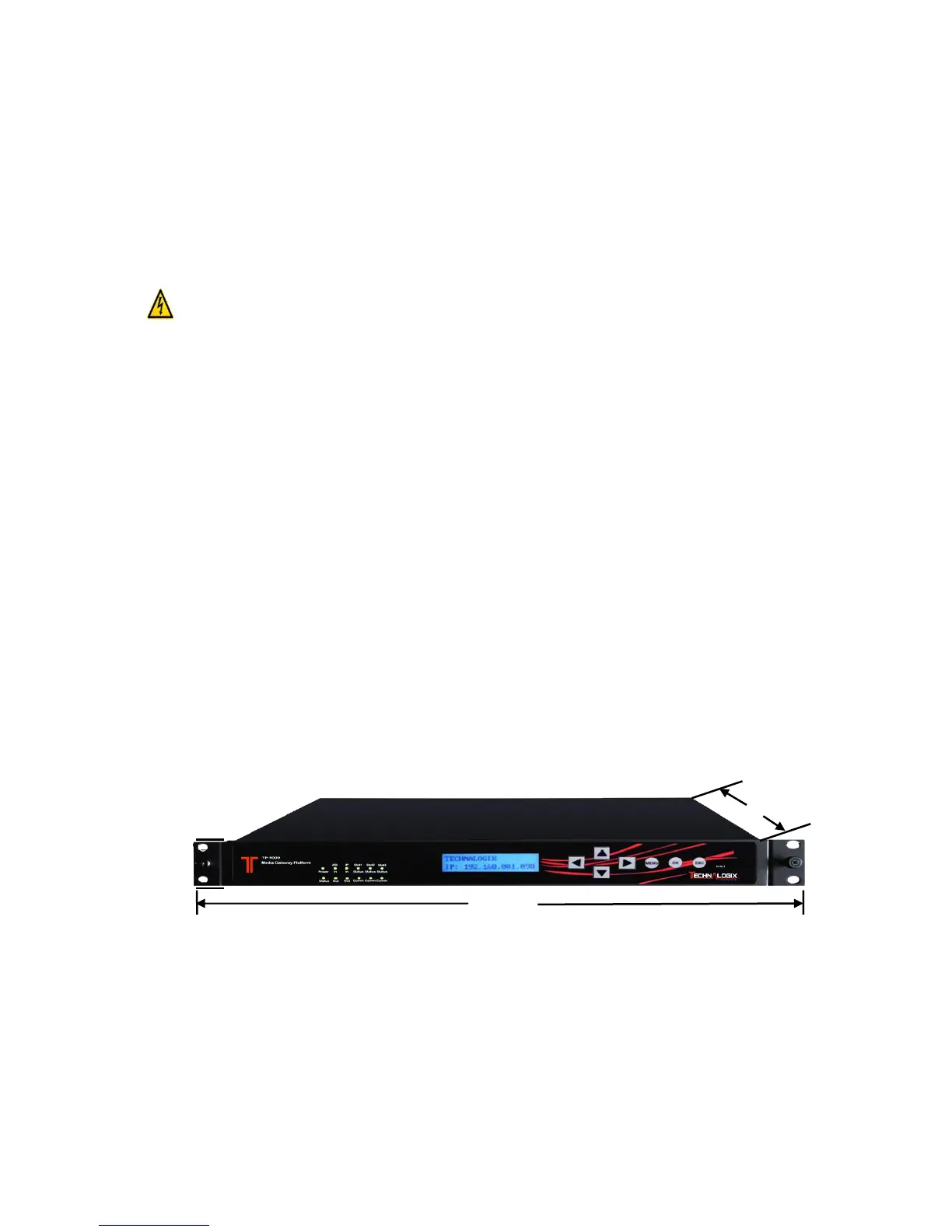The following drawing shows the dimensions of the equipment.