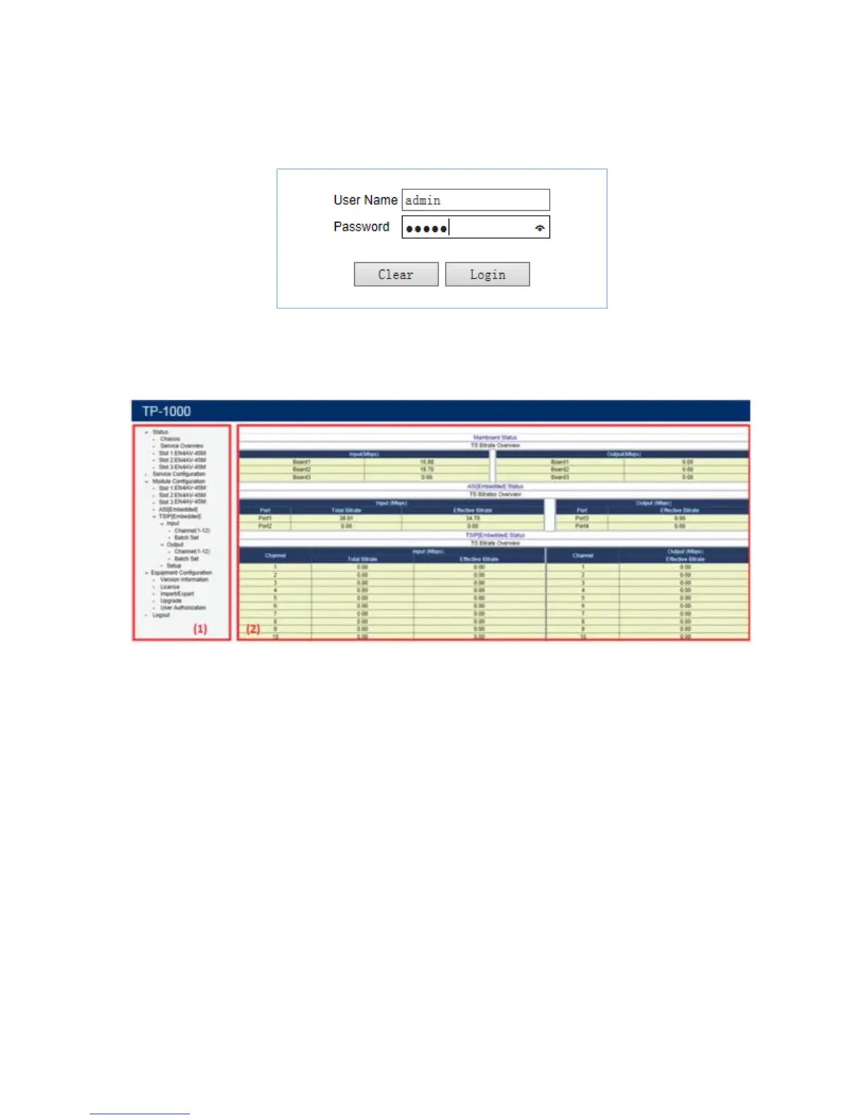 status (the TP1000 chassis can be inserted with at most three sub-modules). Below status