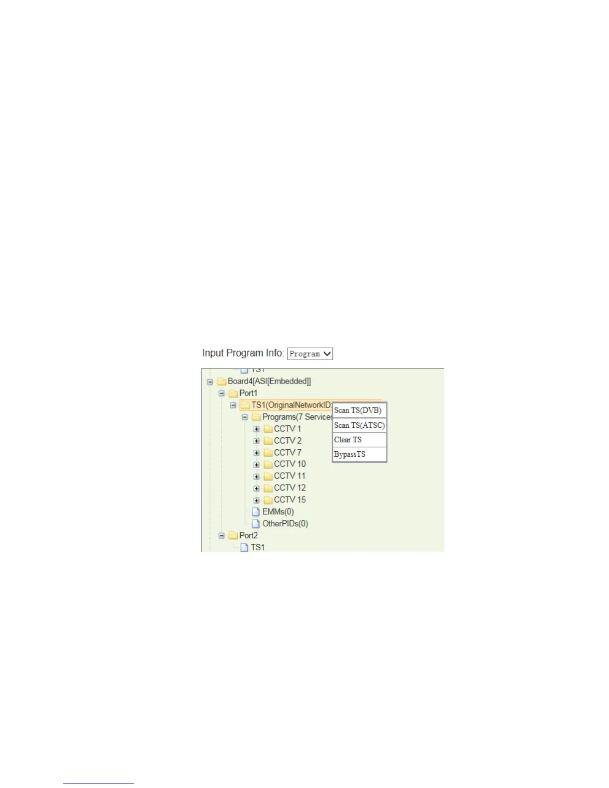 In “Input Program Info”, select a TS# that you want to transfer the ts from, click left