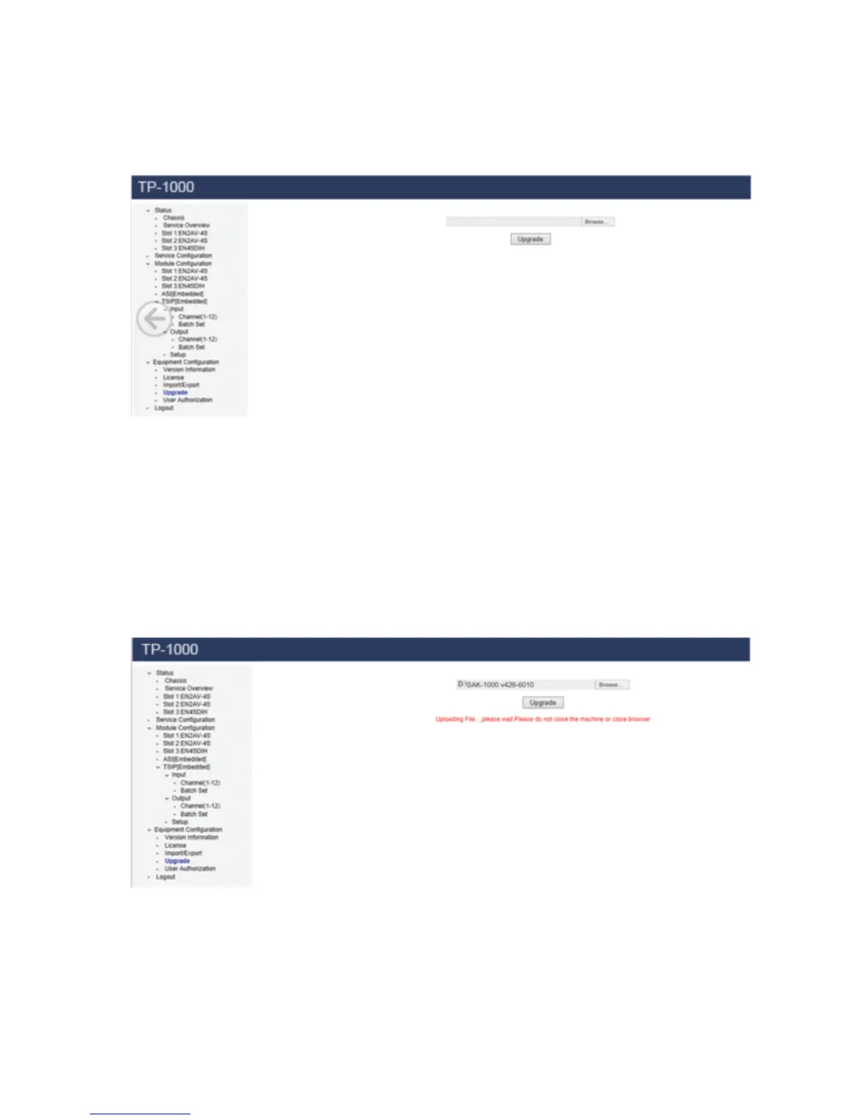 Select “Upgrade” tab under Equipment Configuration in the Tool bar.