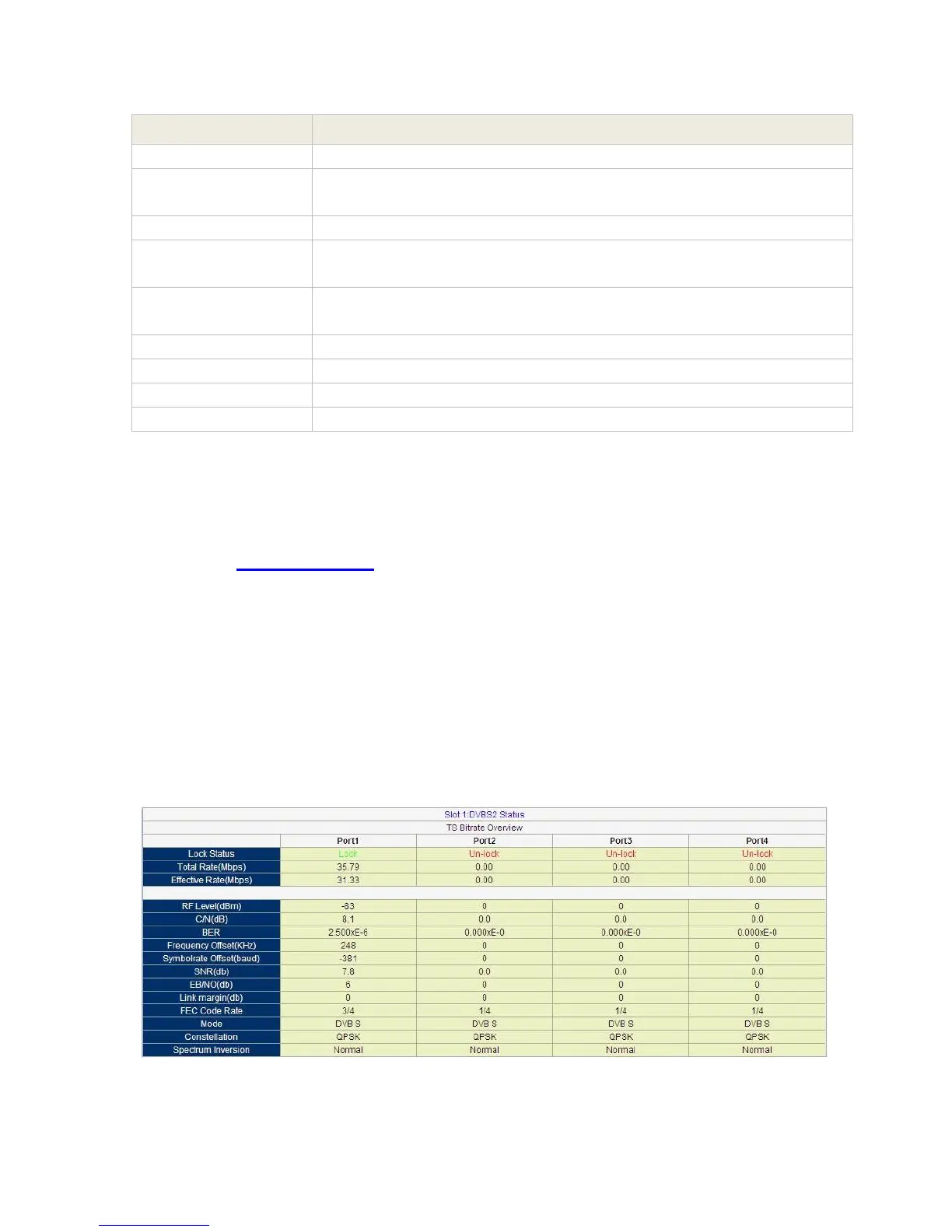 Go to “Status” tab and click sub-tab “DVB-S2”. The parameters of this part are derived from the