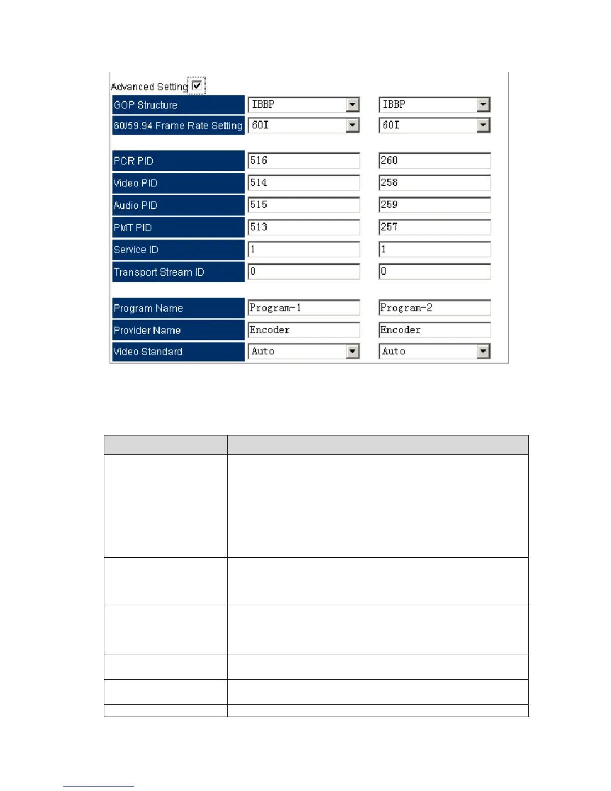 Min. Encode Rate: base on the parameter set in “Video