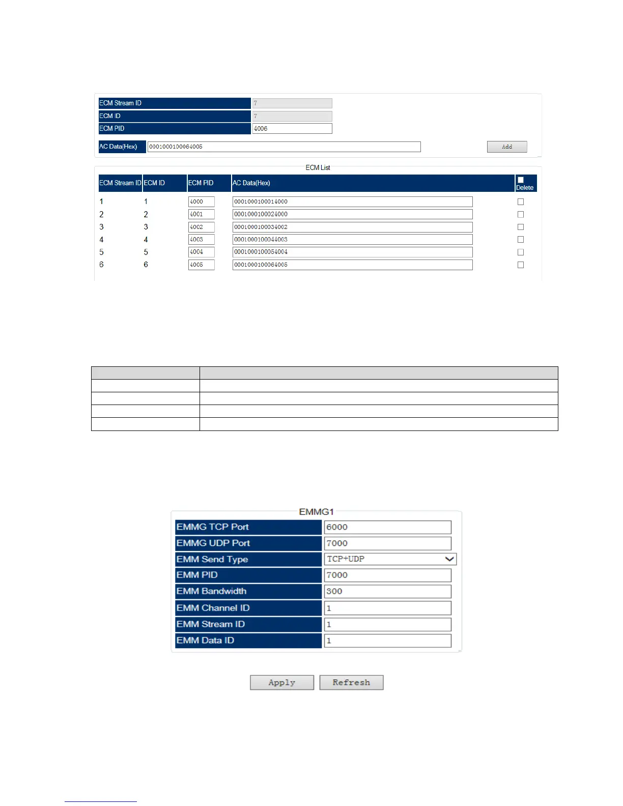 4. EMMG setup: This page allow customer to set the EMMG parameters, these
