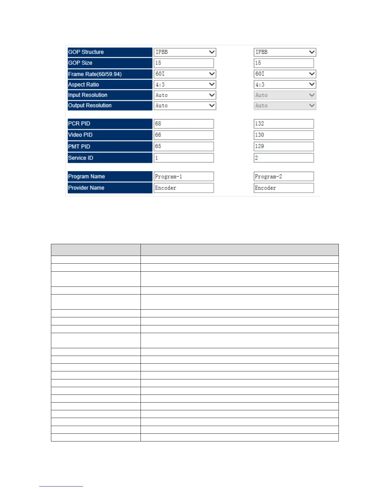 Below are the key parameters: