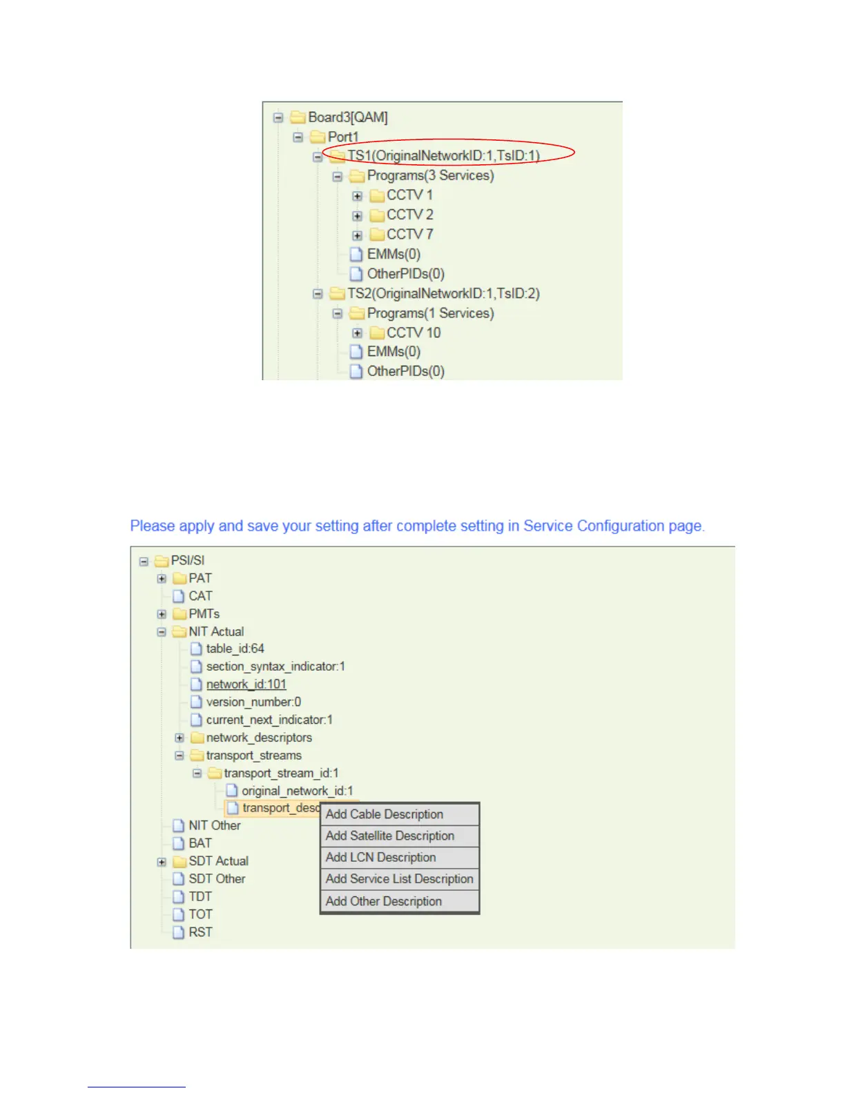 We select “Add Cable Descriptor” here because we use 8QAM module.