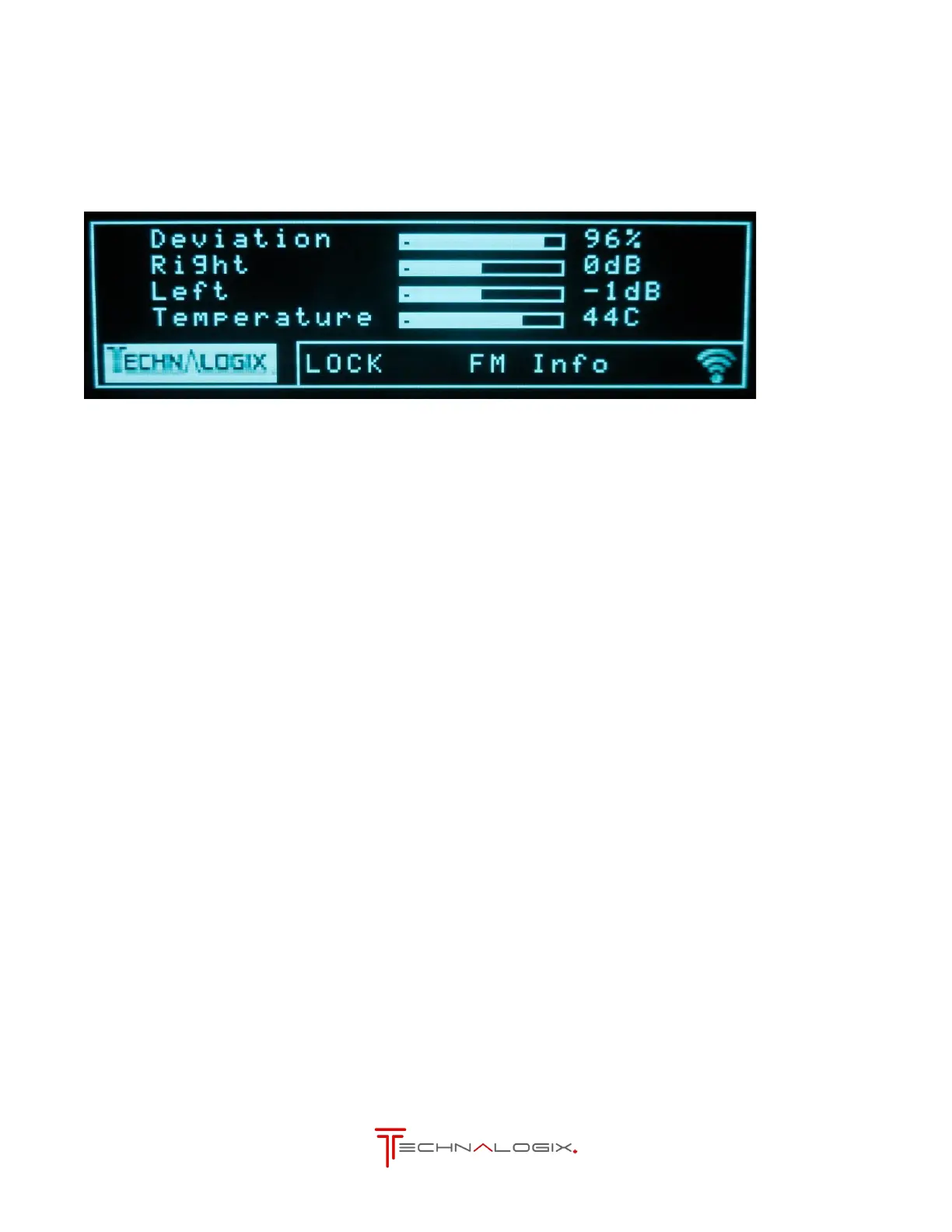 The FM Info Screen summarizes key parameters for the audio that resides on the RF carrier of the FM