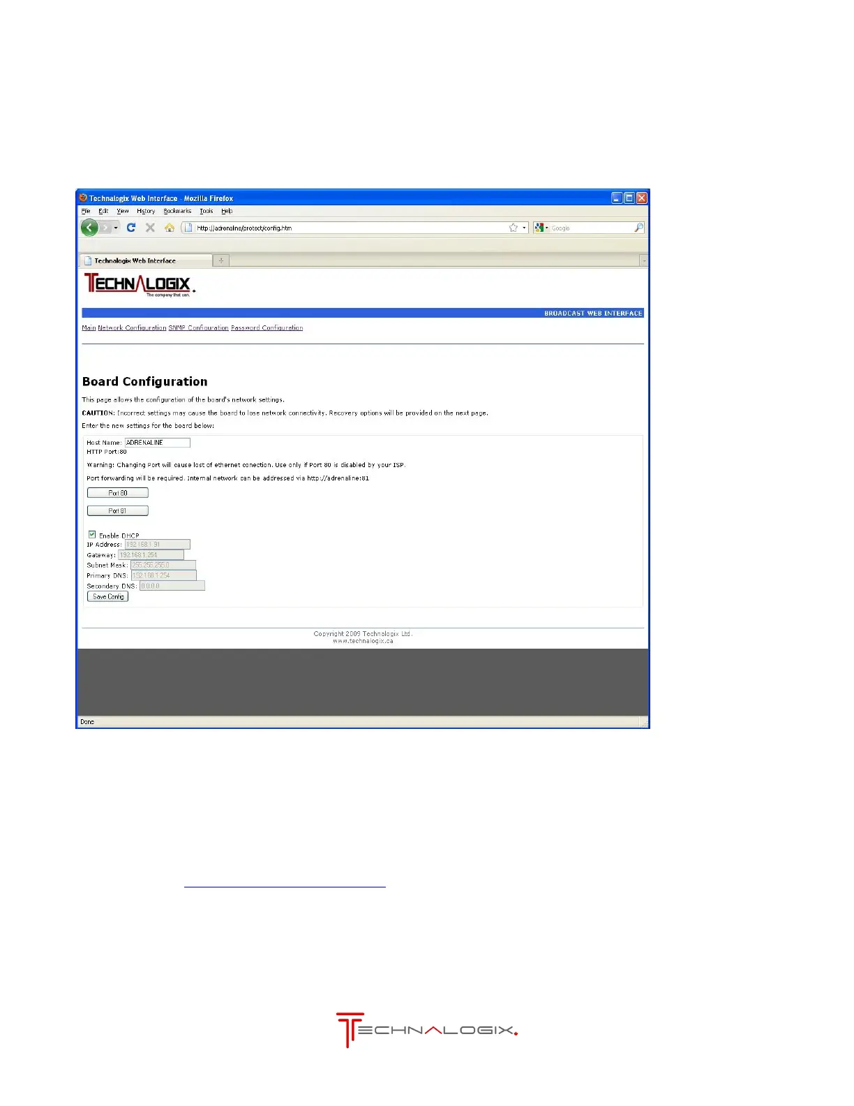 The Host Name shows the current webpage name (default is ADRENALINE). Enter a