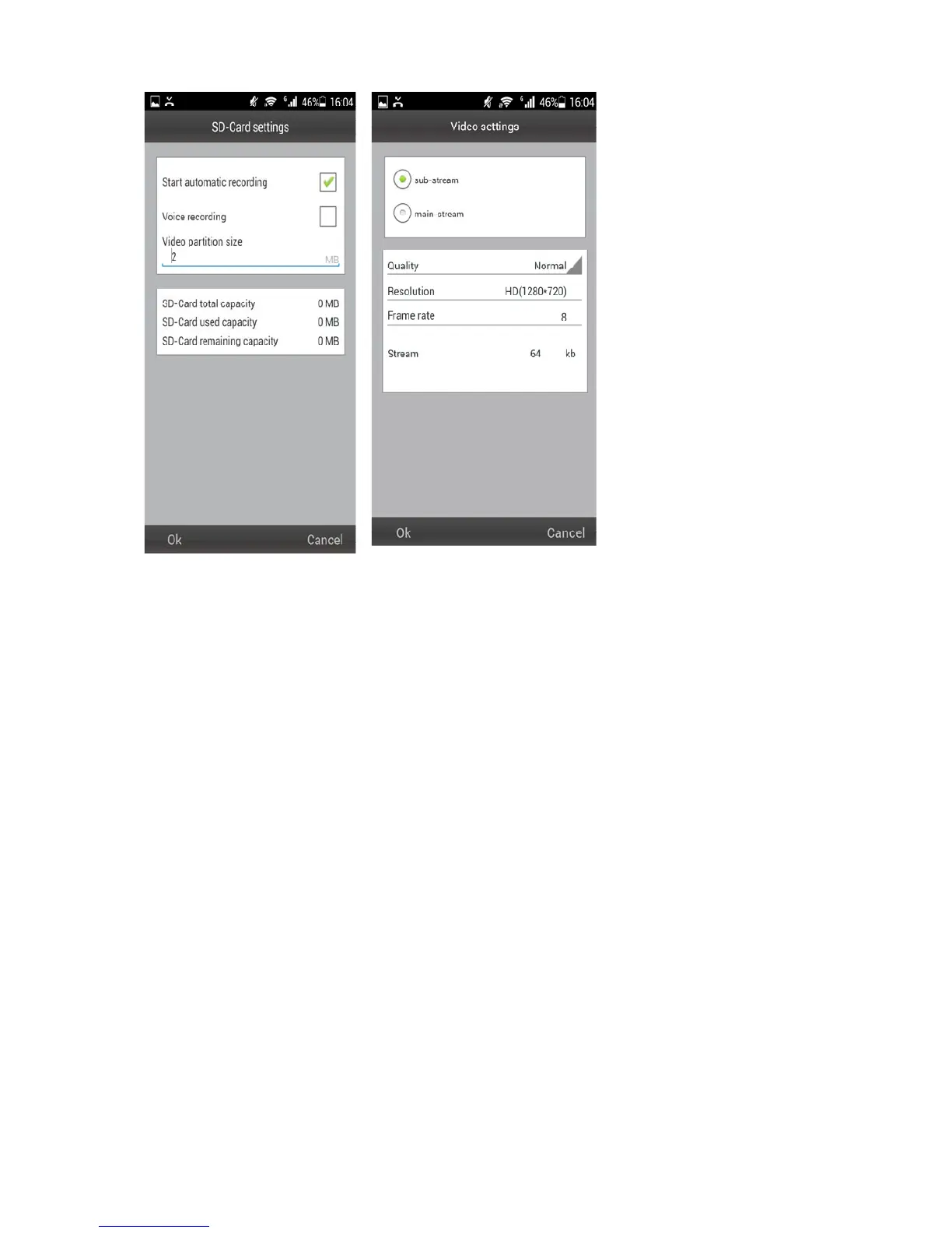 # Video settings: Select between sub-stream & main-stream.