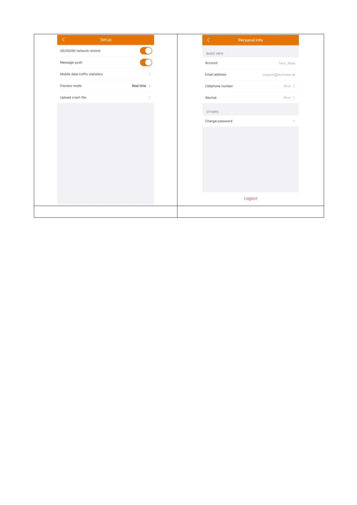Personal info (account) interface