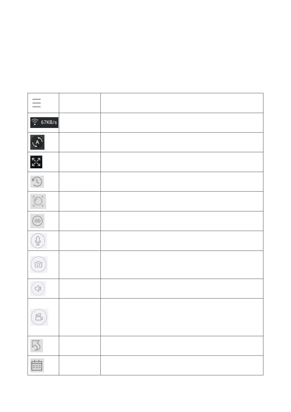 Button function list for Live view and Playback