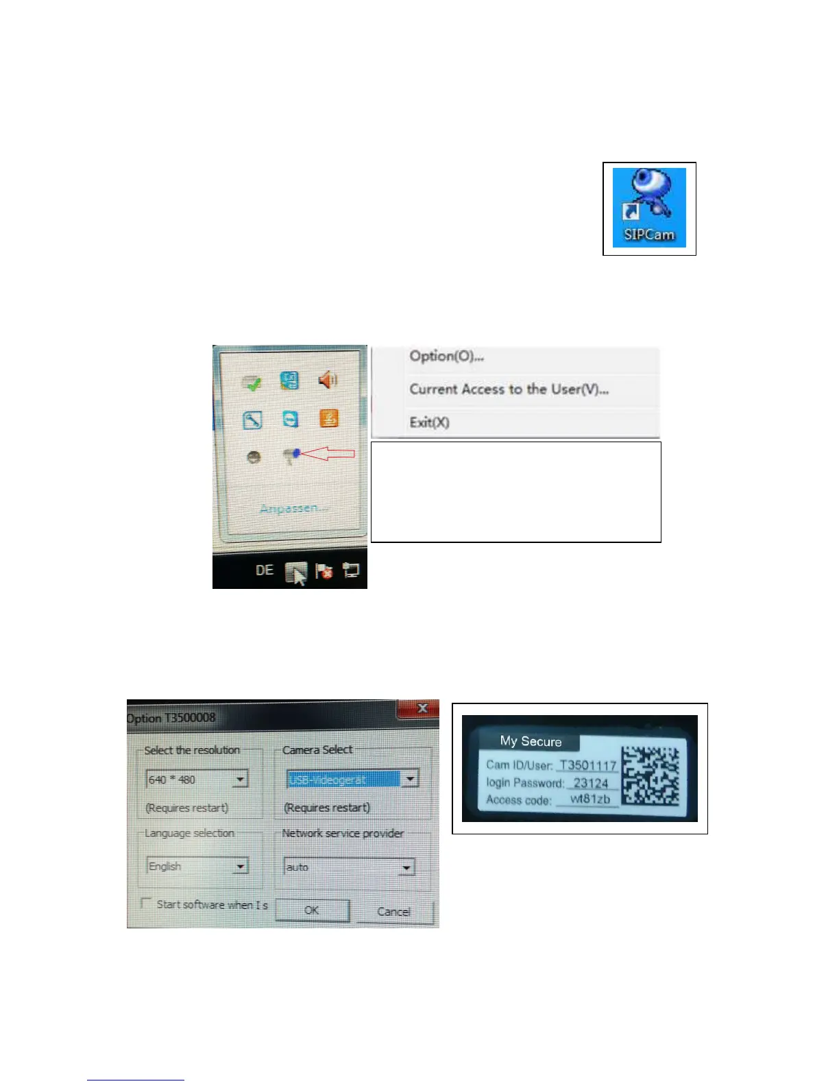 Double-click on the icon and run the SIPCam. In the hidden icons [right hand side in