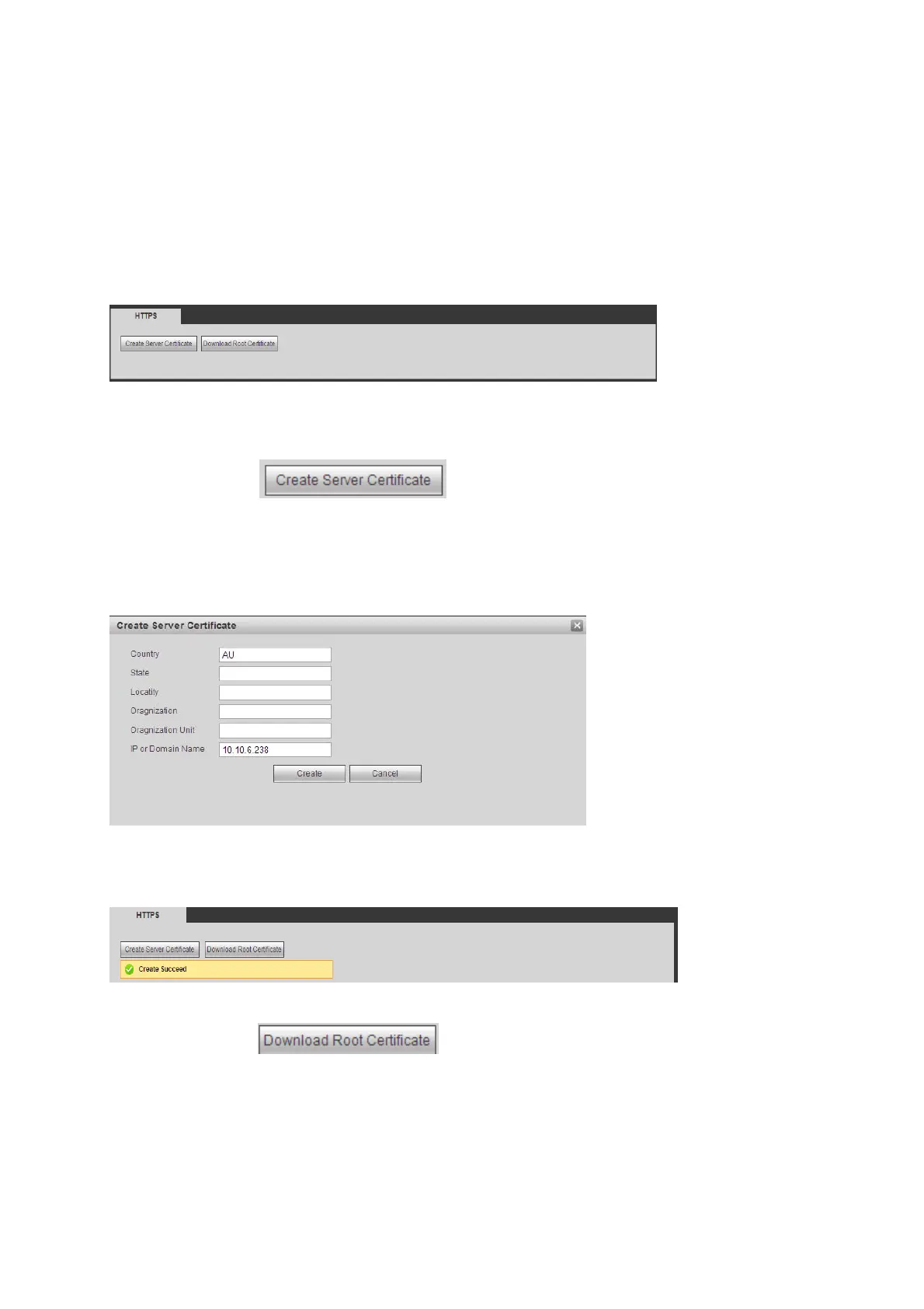 In this interface, you can set to make sure the PC can successfully login via the HTTPS. It is to