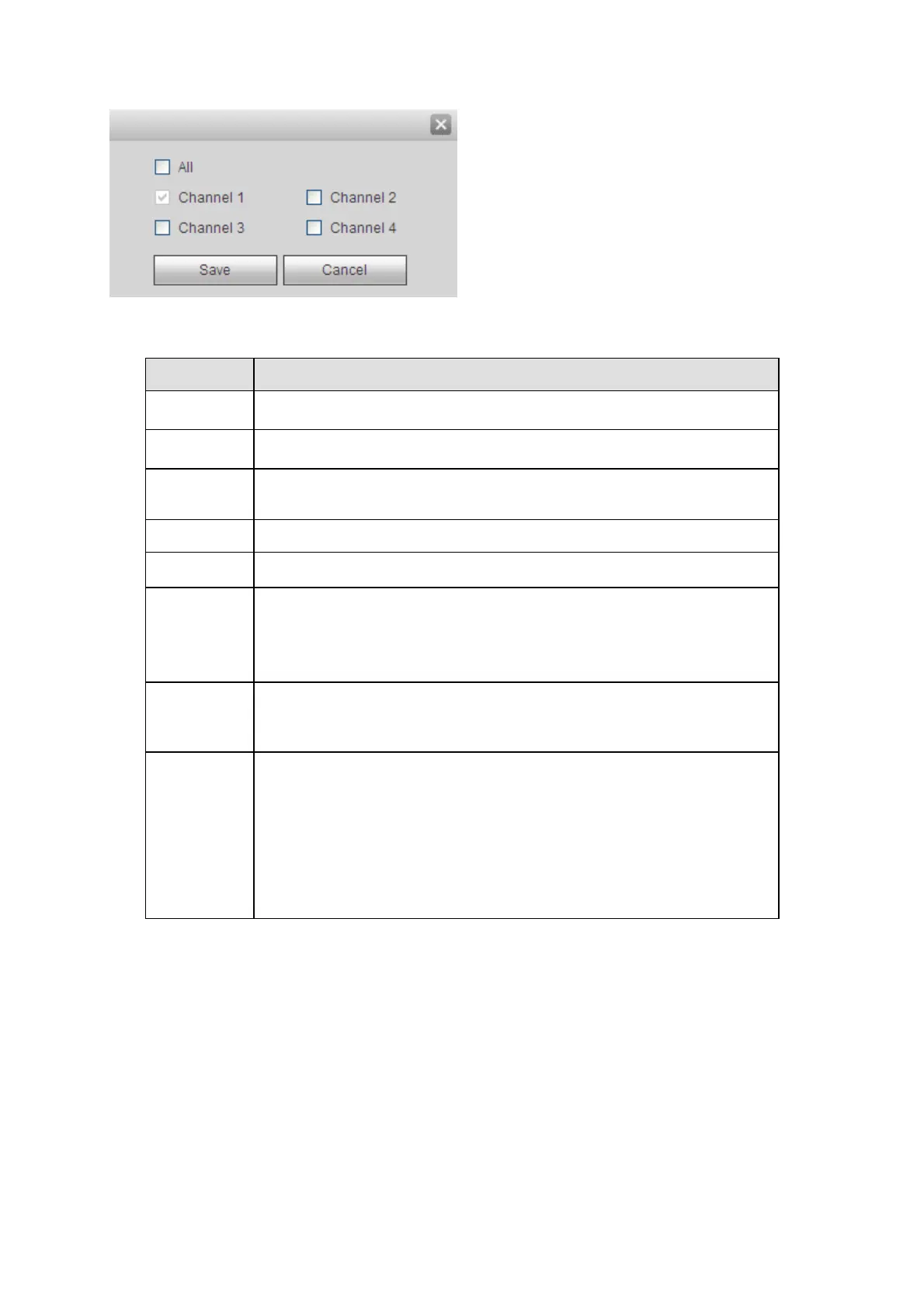 Channel Select a channel from the dropdown list.