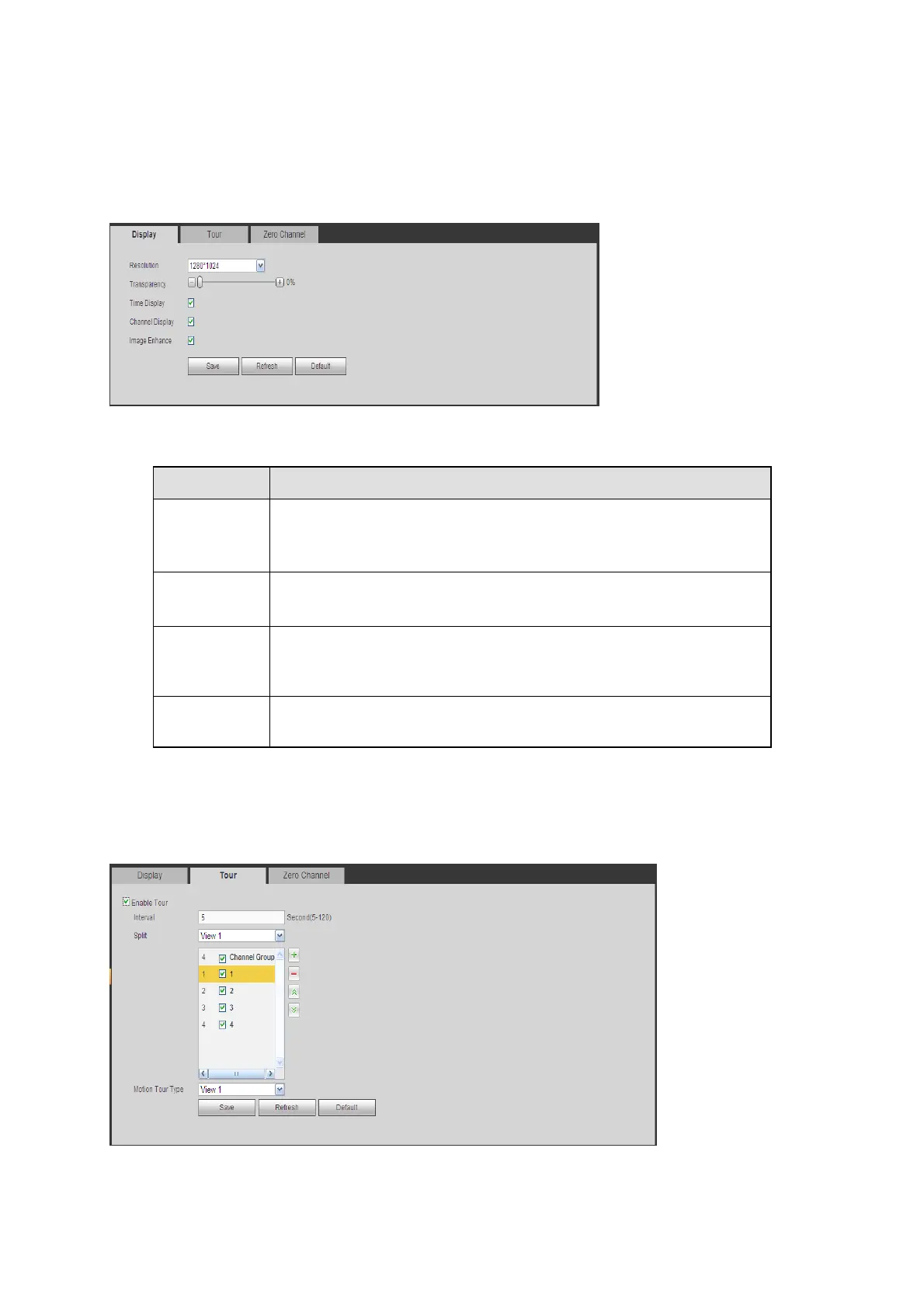 Display interface includes GUI, TV adjust, Tour and zero-channel encoding.