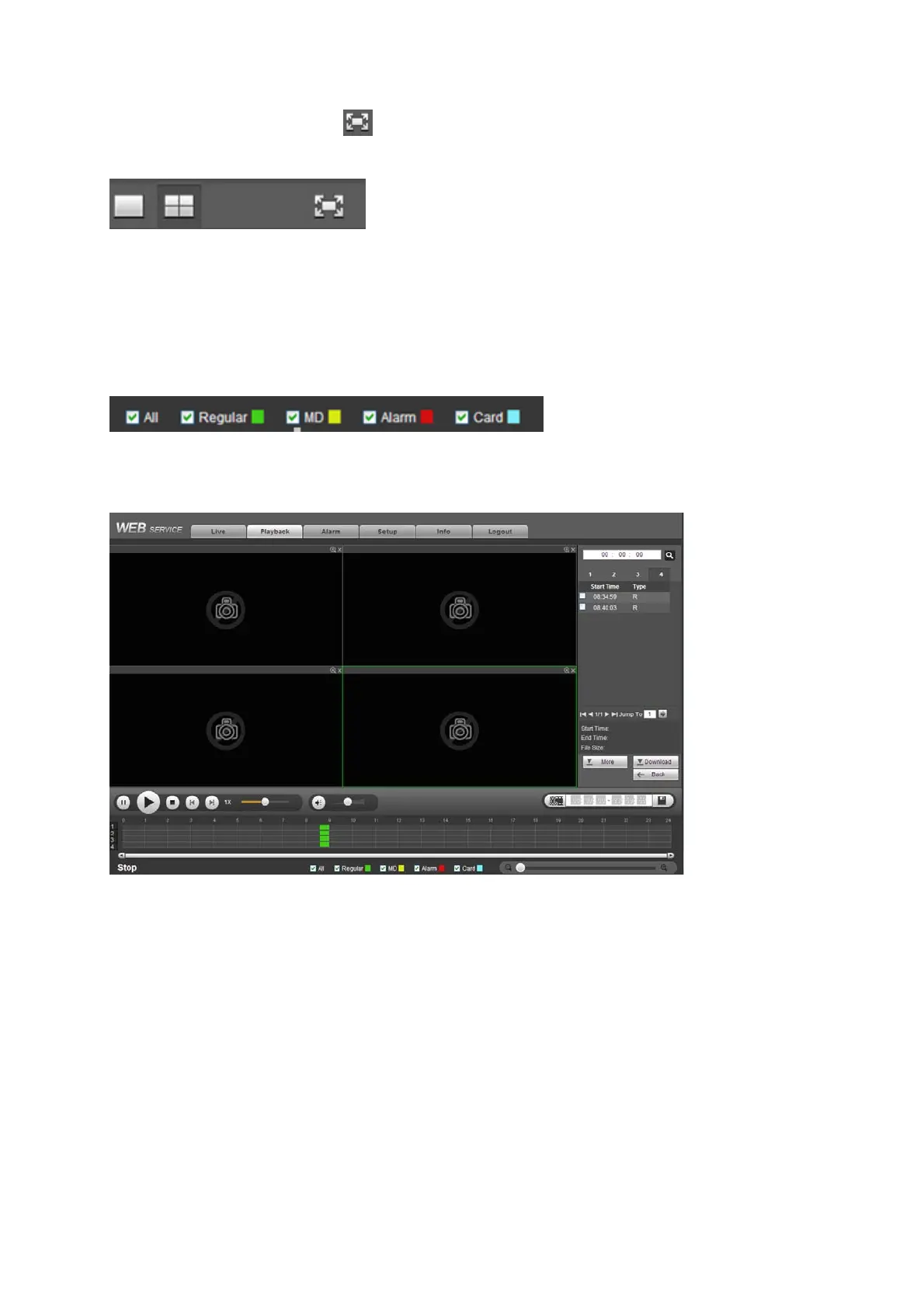select to playback in full-screen. Note for one channel, system can not playback and download at