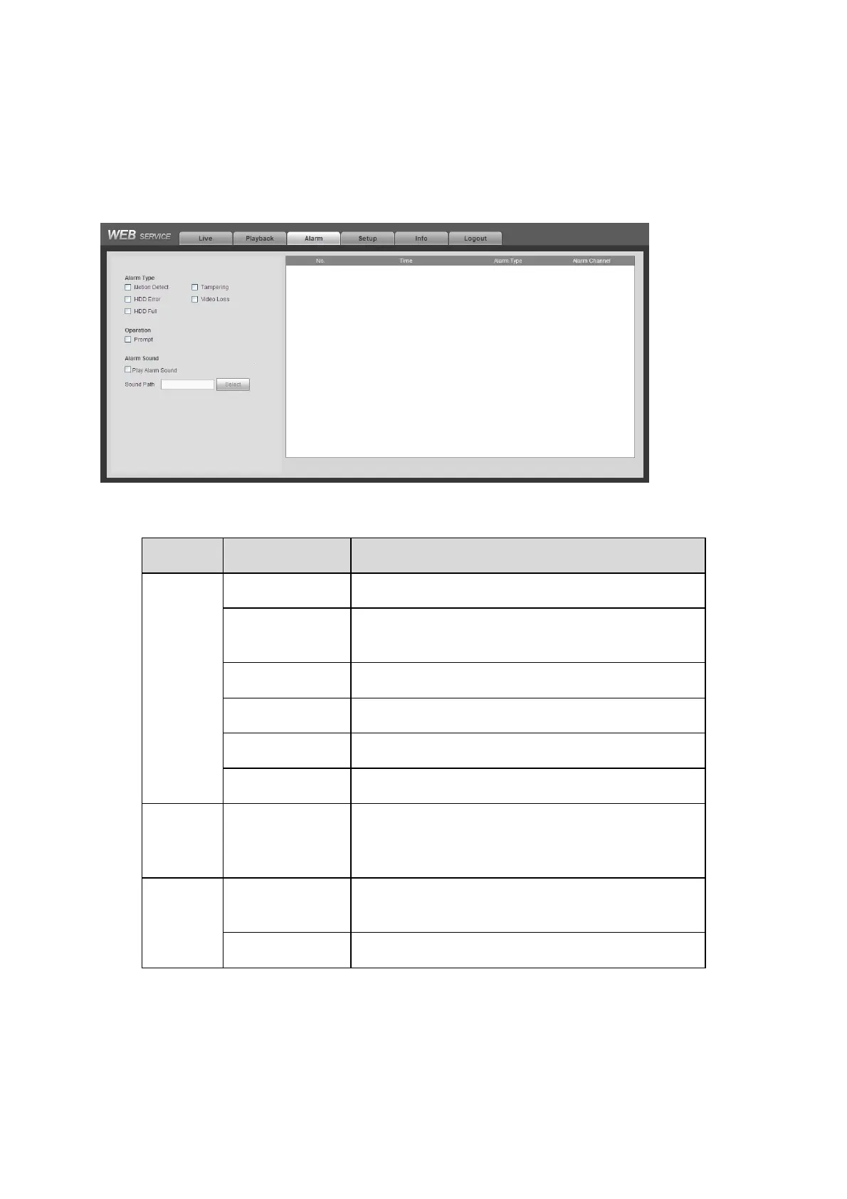 Here you can set device alarm type and alarm sound setup (Make sure you have enabled audio