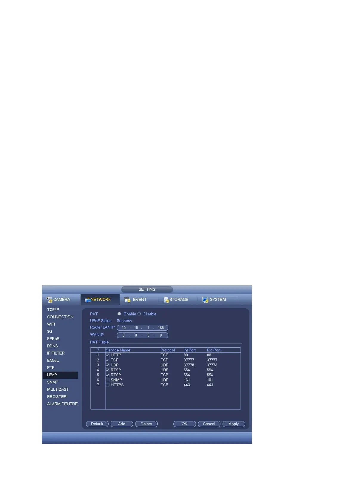 Default: UPNP default port setting is the HTTP, TCP and UDP of the DVR.