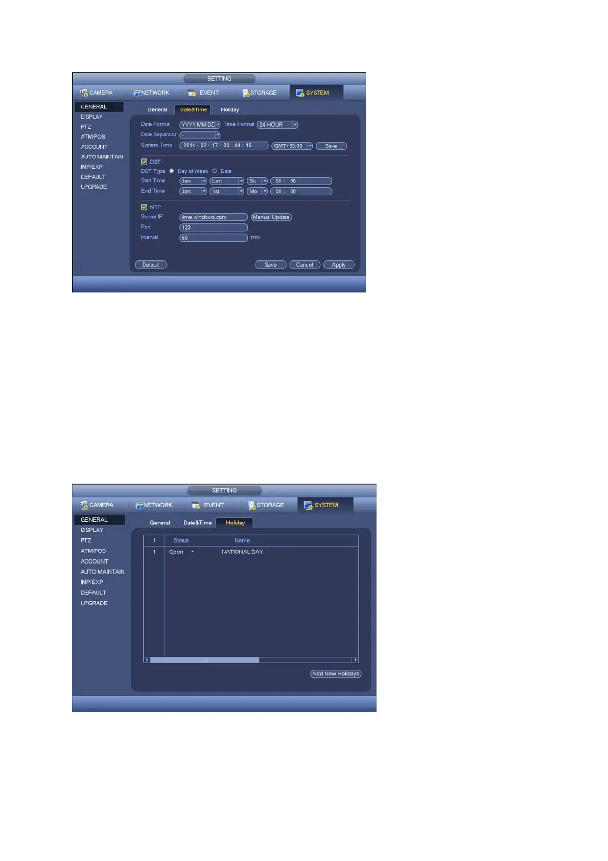 Holiday setup interface is shown as in Figure 4-120. Click Add new holiday button, you can input