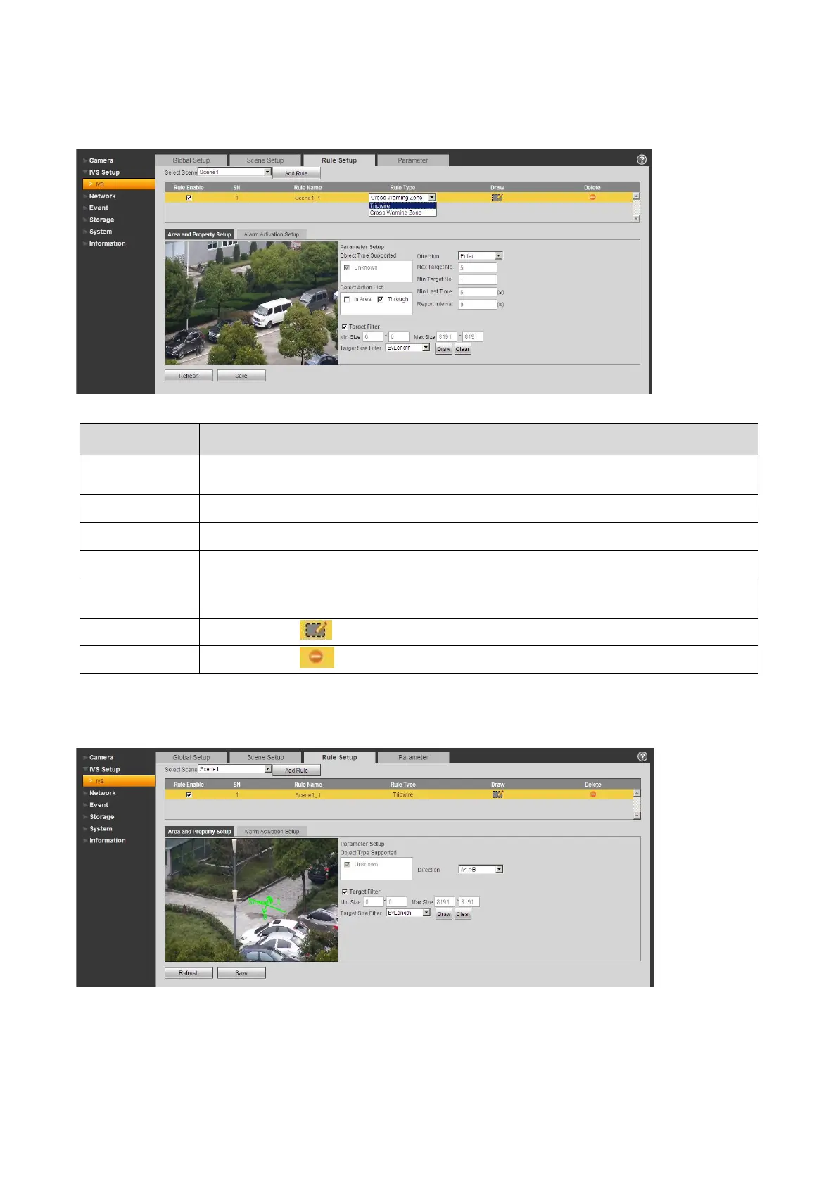 option includes: Tripwire, Intrusion, Abondend, Missing object detection.