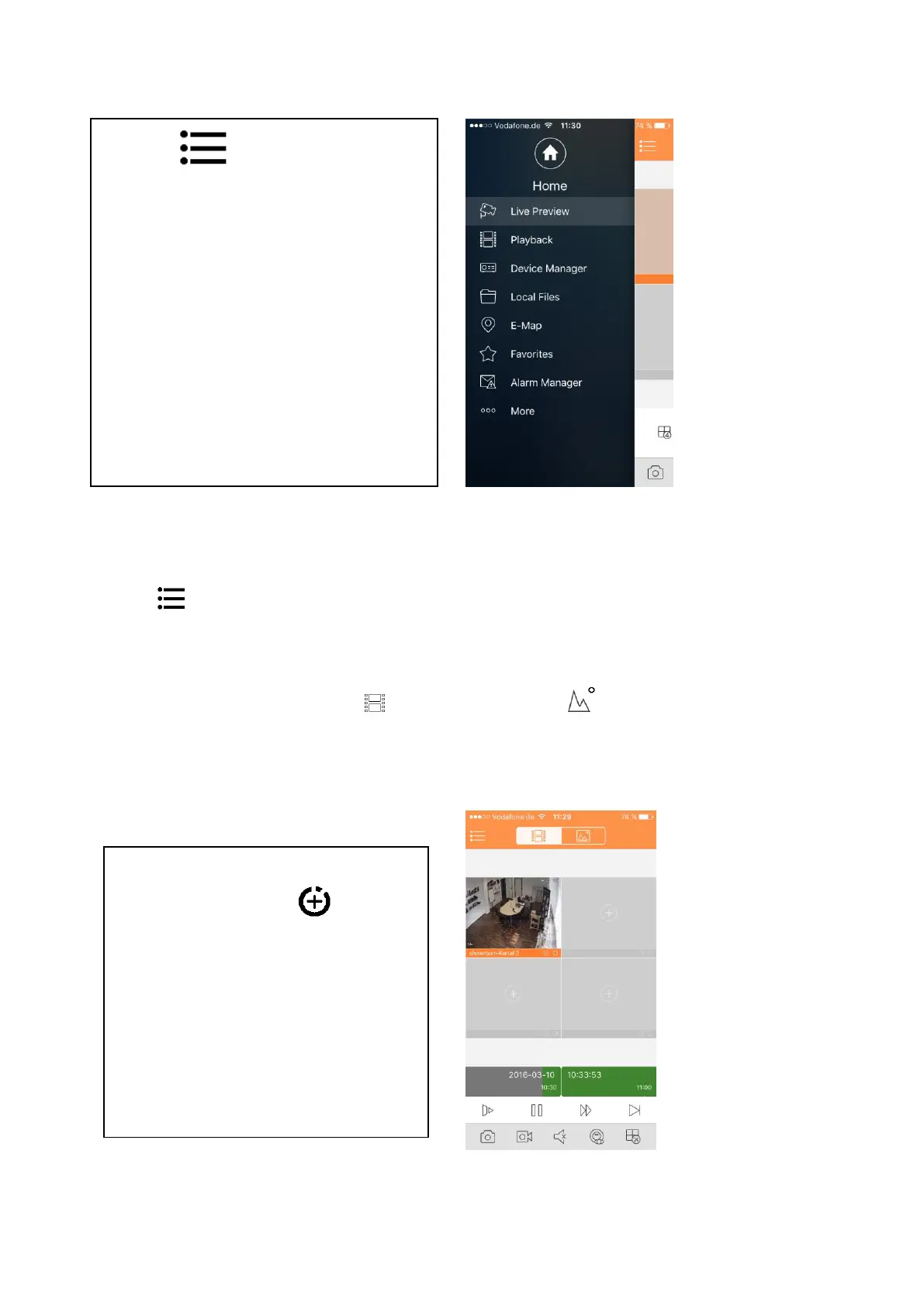 Click on button to view main menu. Click on playback on main menu to enter playback