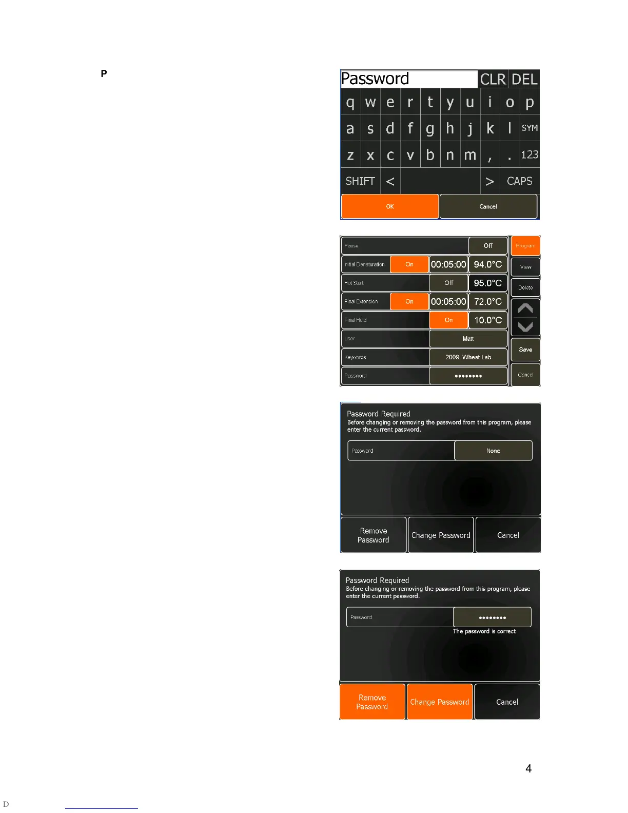 On the Password Editing screen, touch the