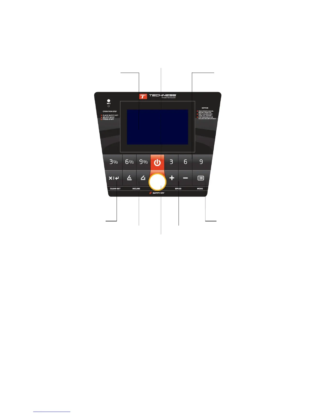 When running, press it to decrease speed by 0.5km/h. Hold it, speed is deceased continuously.