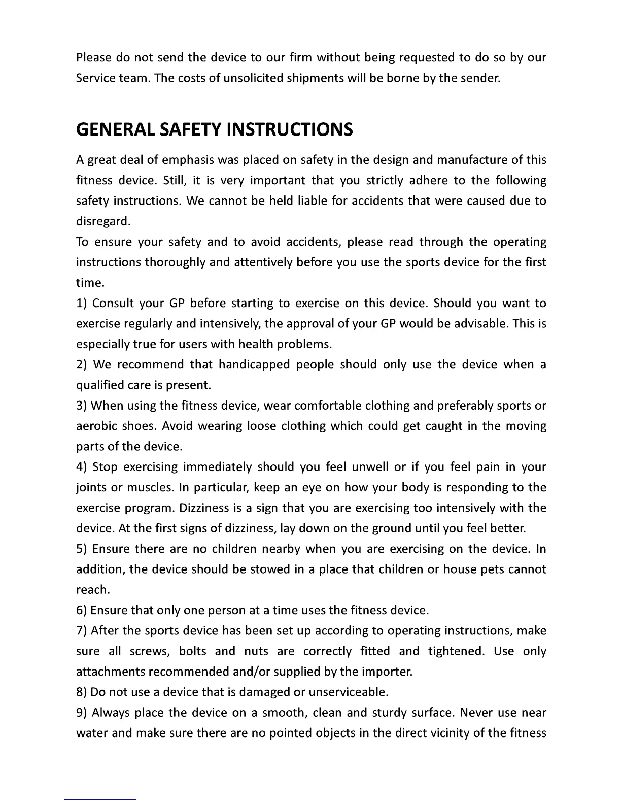 Techness RUN 800 - GENERAL SAFETY INSTRUCTIONS; User Safety Guidelines