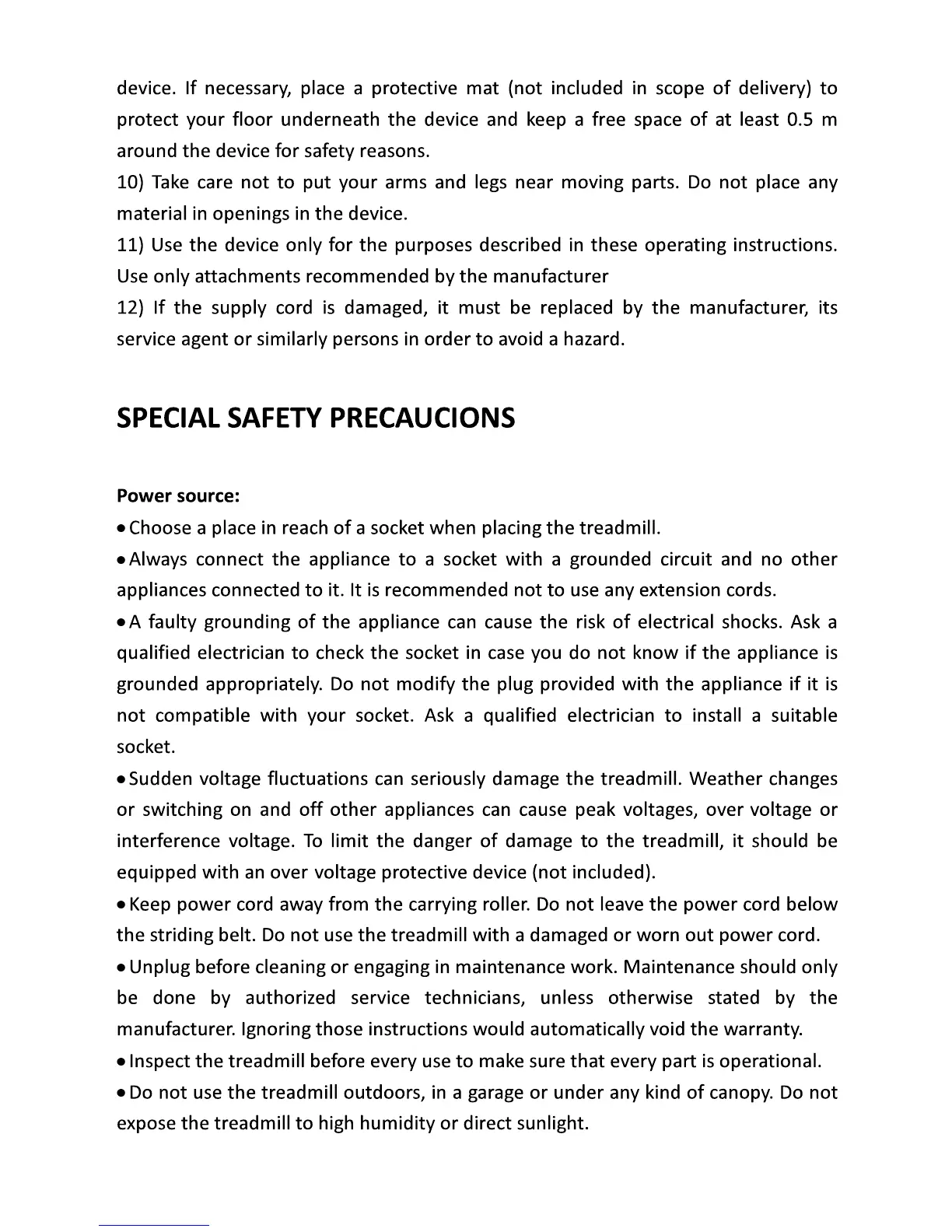 Techness RUN 800 - SPECIAL SAFETY PRECAUTIONS; Electrical Safety and Power Source