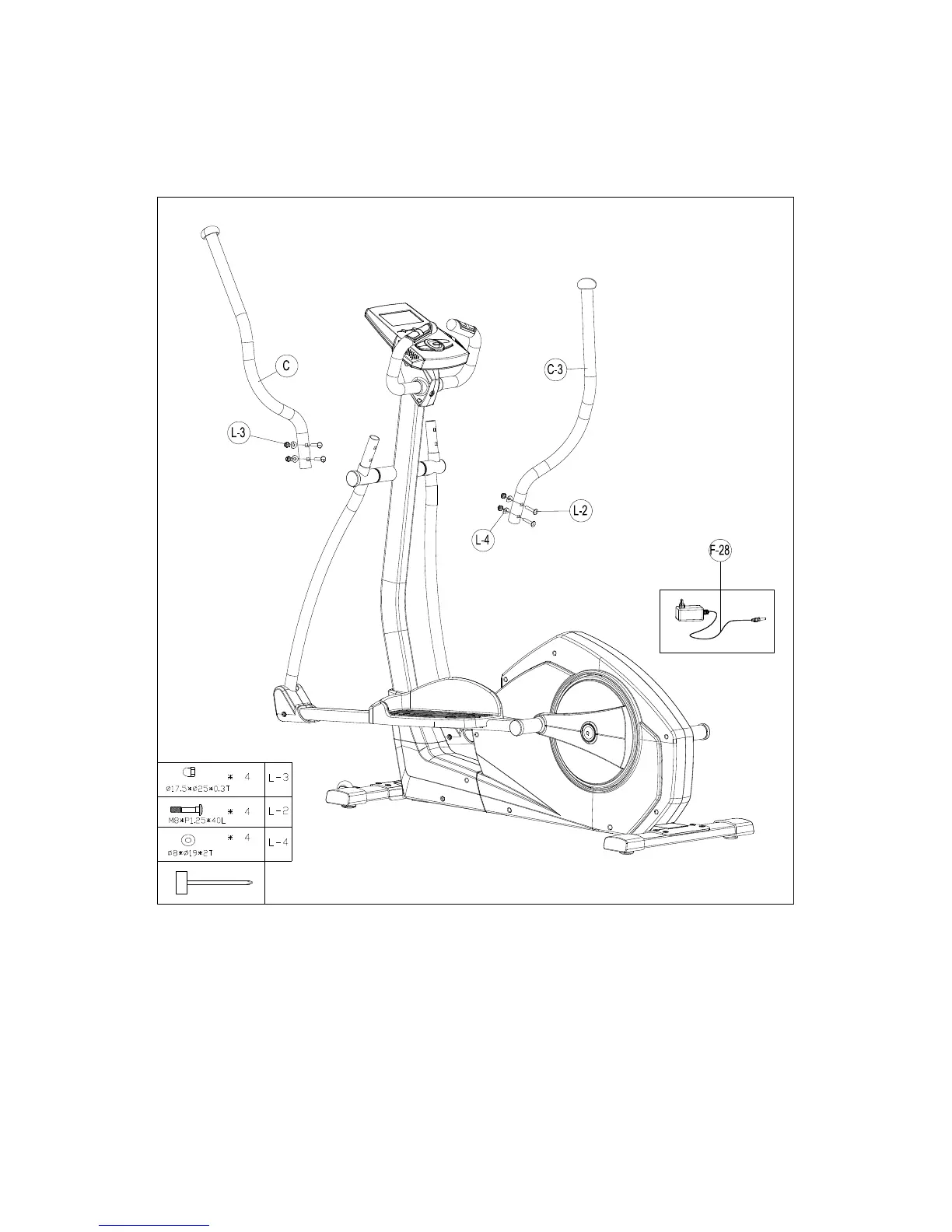 1. Assemblez le Guidon supérieur (C, C-3) par boulon (L-2) avec écrou (L-3) et en demi-cercle