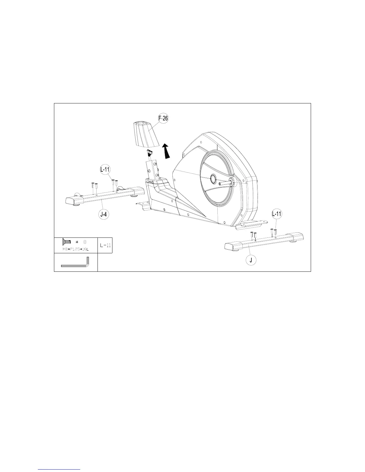 1. Fasten front and rear stabilizers to the main frame using 2 carriage bolts (L-11).