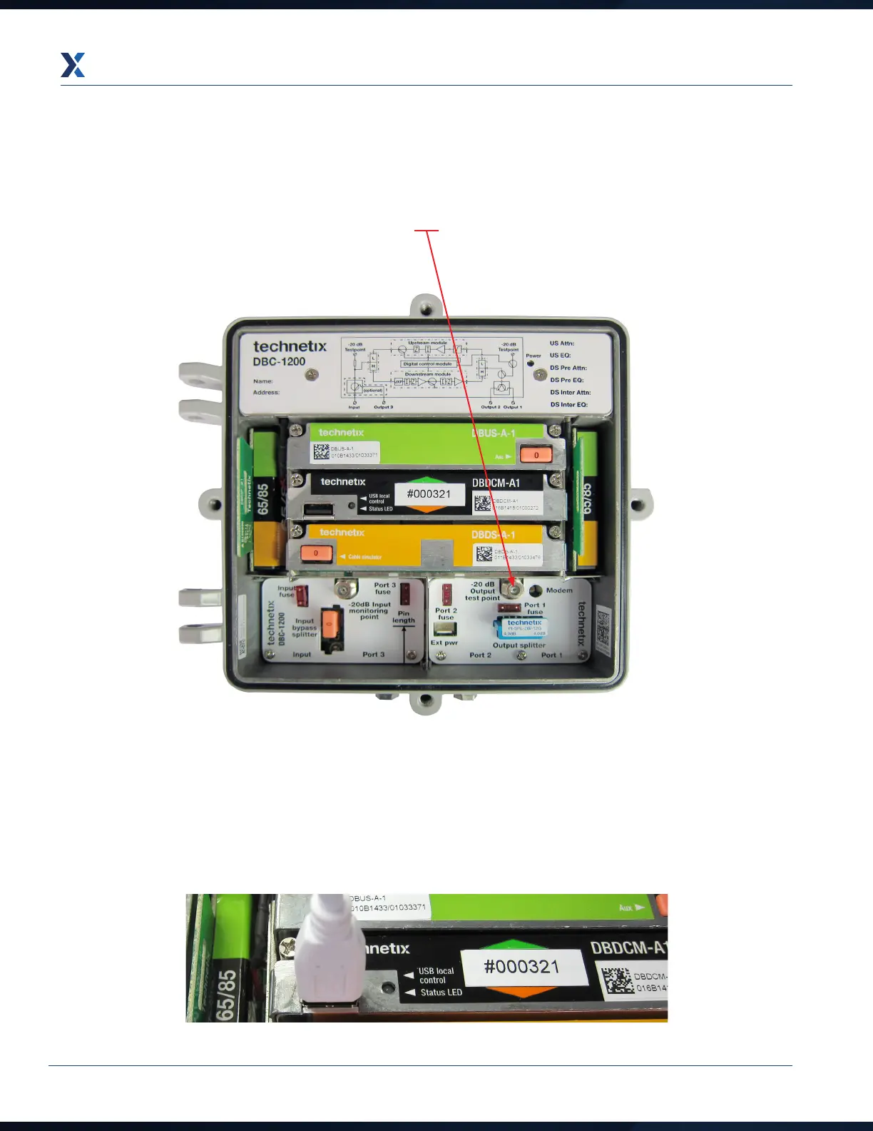 1. Connect a return path signal generator or a return path sweep system analyser to the -20 dB output test point.