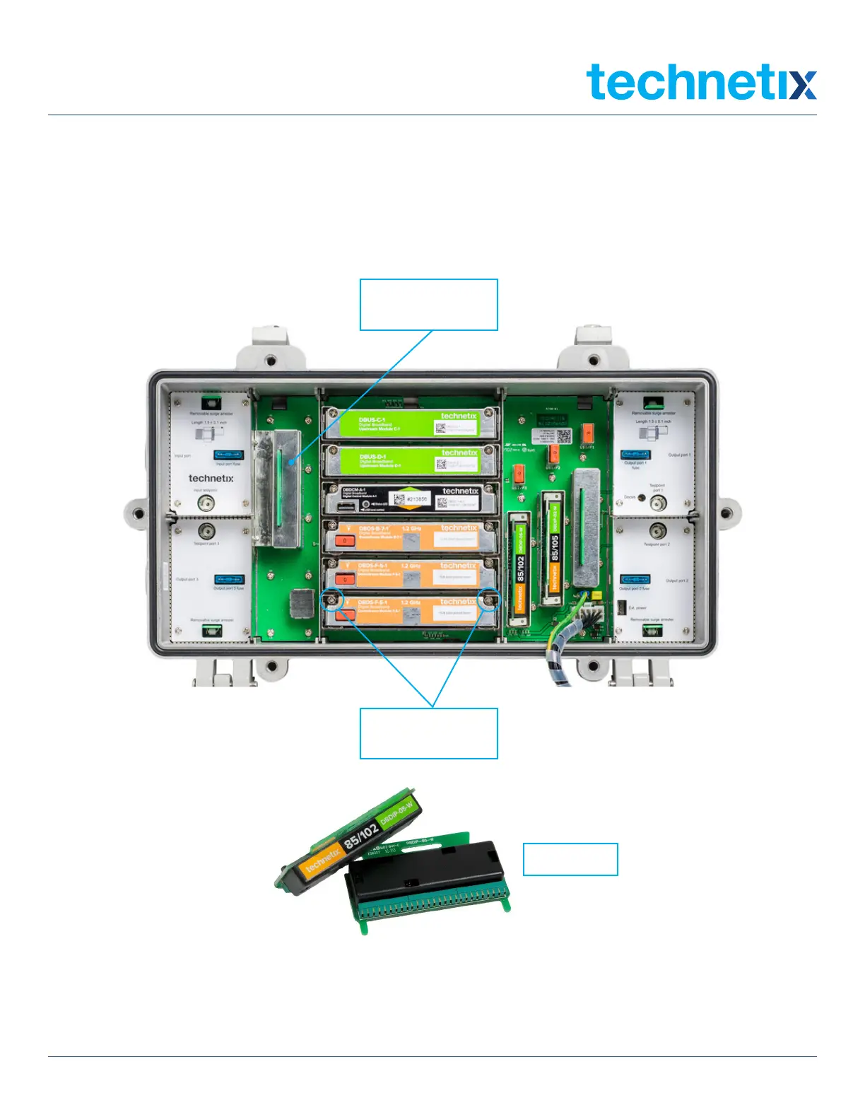 3. Insert two optical transmitters in the upstream amplifier slots and up to 3 optical receivers in the downstream amplifier